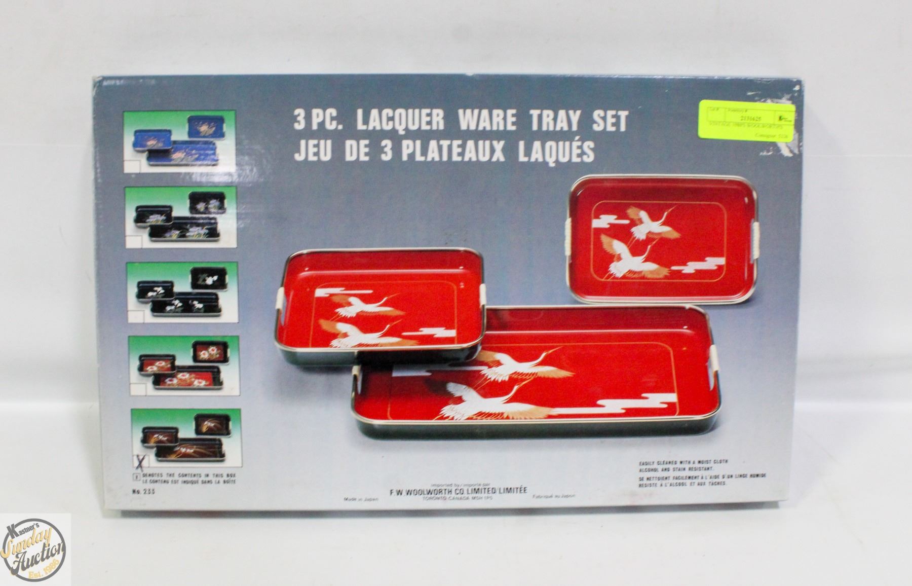 LACQUER WARE TRAY SET 2 PC (1 MISSING) UNUSED **ALL ITEMS MUST BE REMOVED BY 5PM SATURDAY, NOVEMBER 29TH 2025. ALL REMAINING ITEMS WILL BE SUBJECT TO A $6.00 PER DAY STORAGE CHARGE. ANY ITEMS REMAINING AFTER MONDAY, DECEMBER 15TH 2025 WILL BE CONSIDERED FORFEITED. NO REFUNDS WILL BE ISSUED FOR FORFEITED ITEMS. TO SCHEDULE A PICK UP APPOINTMENT CLICK HERE