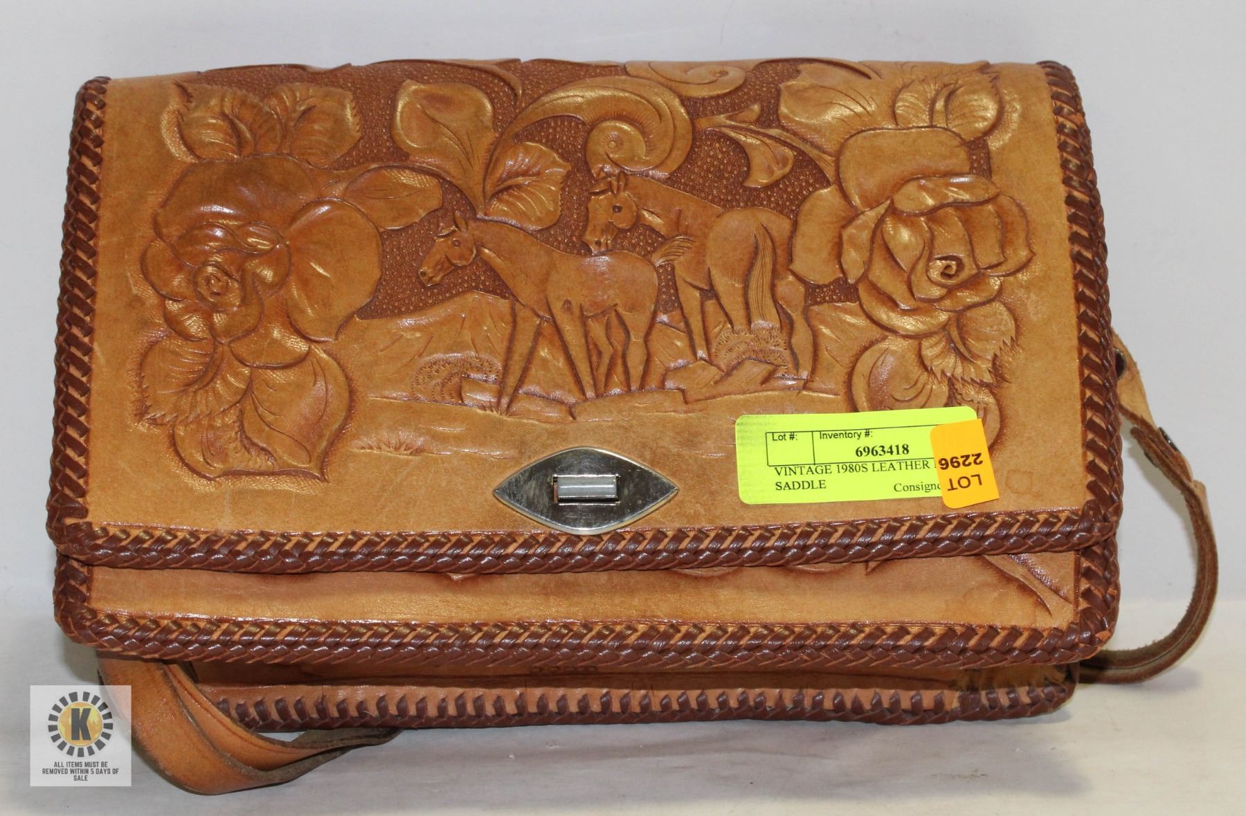 SHOULDER BAG HANDBAG BROWN WITH TOOLED HORSES AND FOAL AMONG FLOWERS **ALL ITEMS MUST BE REMOVED BY 5PM SATURDAY, APRIL 3RD 2025. ALL REMAINING ITEMS WILL BE SUBJECT TO A $6.00 PER DAY STORAGE CHARGE. ANY ITEMS REMAINING AFTER MONDAY, MAY 19TH 2025 WILL BE CONSIDERED FORFEITED. NO REFUNDS WILL BE ISSUED FOR FORFEITED ITEMS. TO SCHEDULE A PICK UP APPOINTMENT CLICK HERE