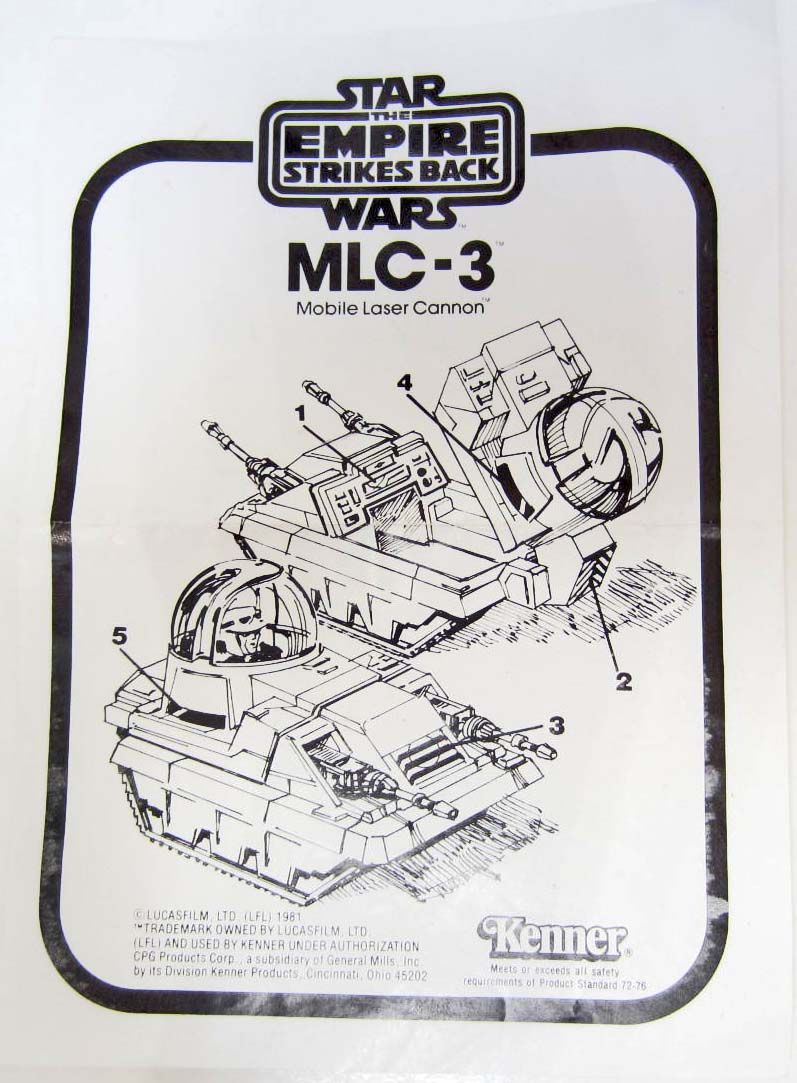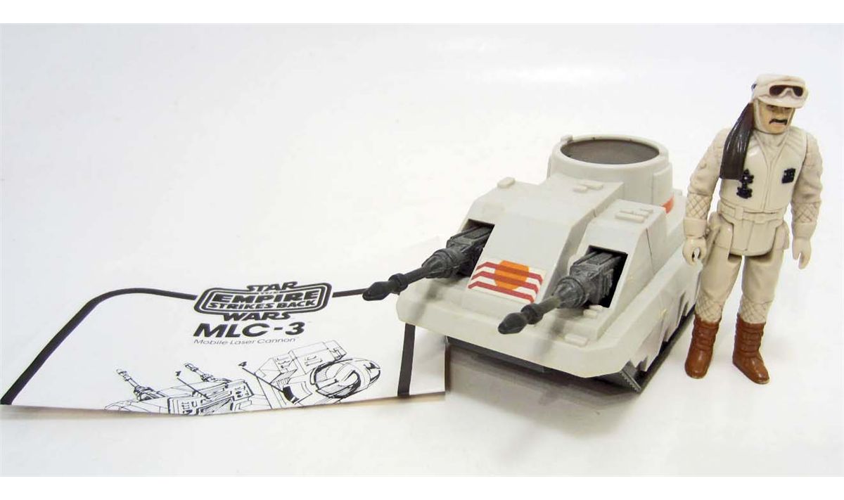 Mobile Laser Cannon. Includes a Hoth Rebel Commander and original instructions. Still works, good played with condition, missing plastic dome.