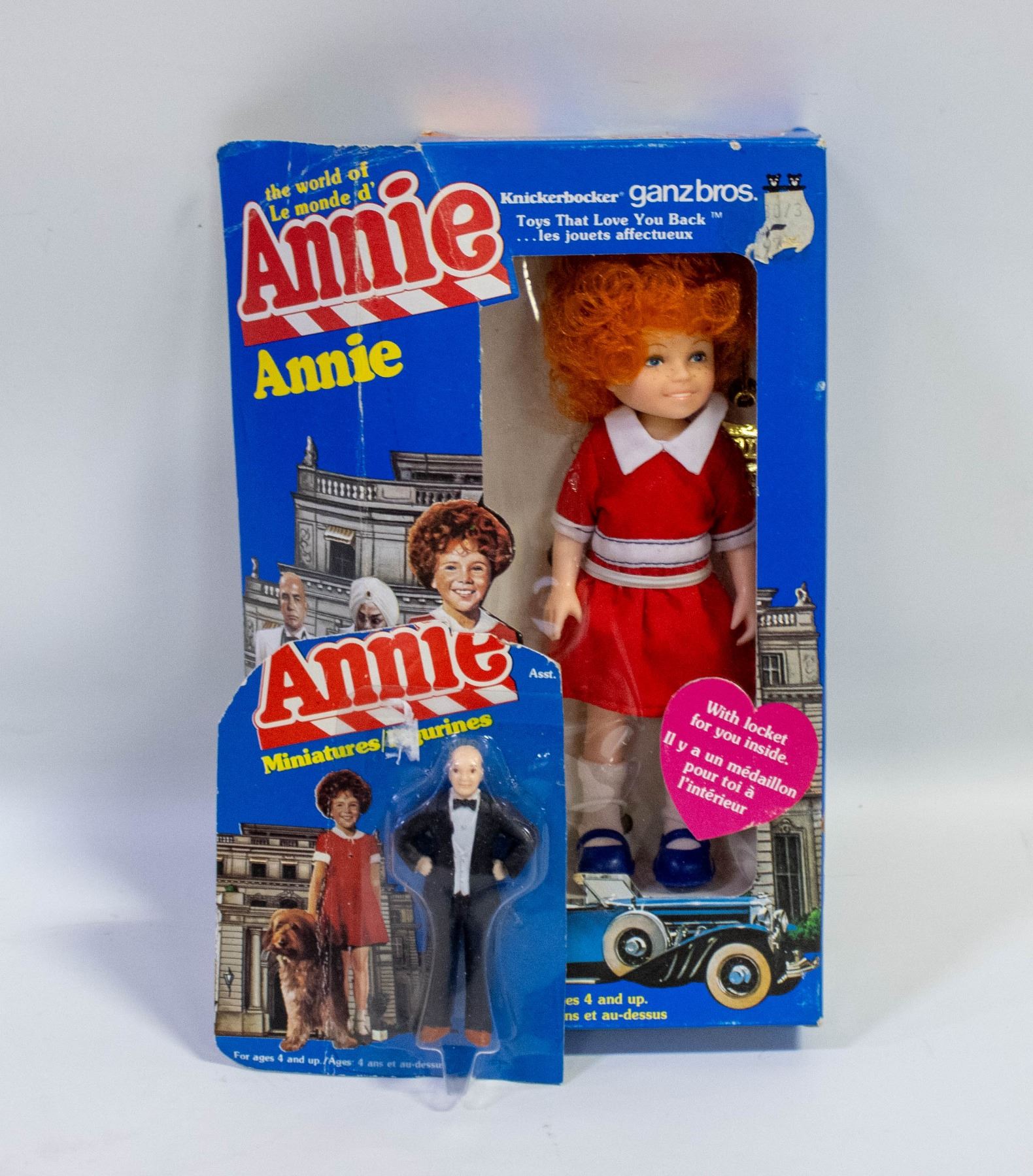 KNICKERBOCKER ANNIE DOLL + LOCKET #3856 W/NEW IN PACKAGE DADDY WARBUCK 1981 KNICKERBOCKER **ALL ITEMS MUST BE REMOVED BY 5PM SATURDAY, MARCH 28TH 2026. ALL REMAINING ITEMS WILL BE SUBJECT TO A $6.00 PER DAY STORAGE CHARGE. ANY ITEMS REMAINING AFTER MONDAY, APRIL 20TH 2026 WILL BE CONSIDERED FORFEITED. NO REFUNDS WILL BE ISSUED FOR FORFEITED ITEMS. TO SCHEDULE A PICK UP APPOINTMENT CLICK HERE