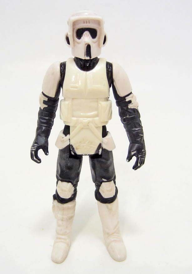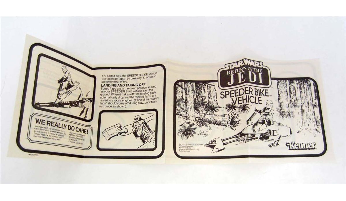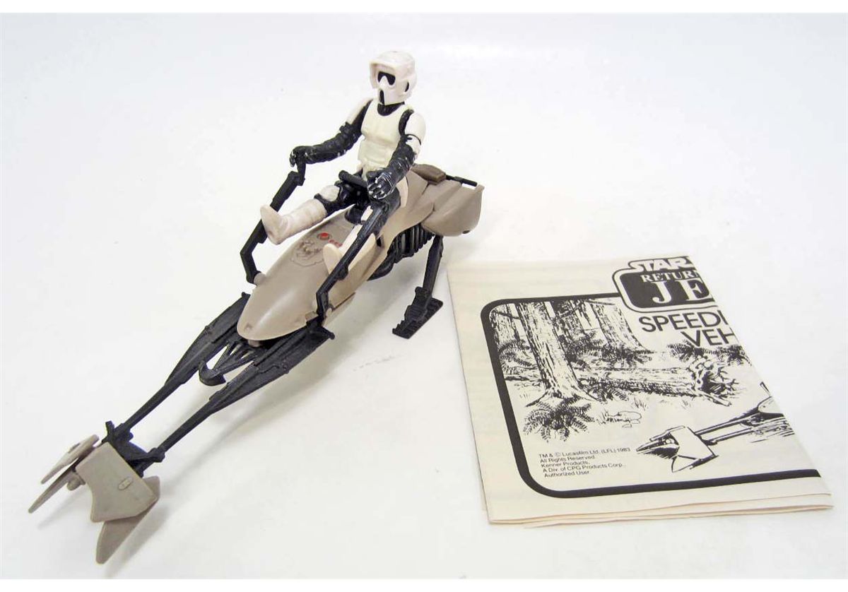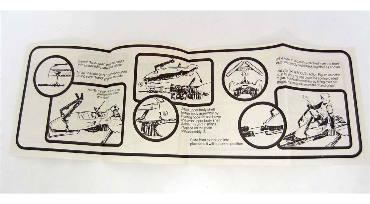 Includes Scout Trooper and original instructions. Still works, good played with condition, missing back flaps.