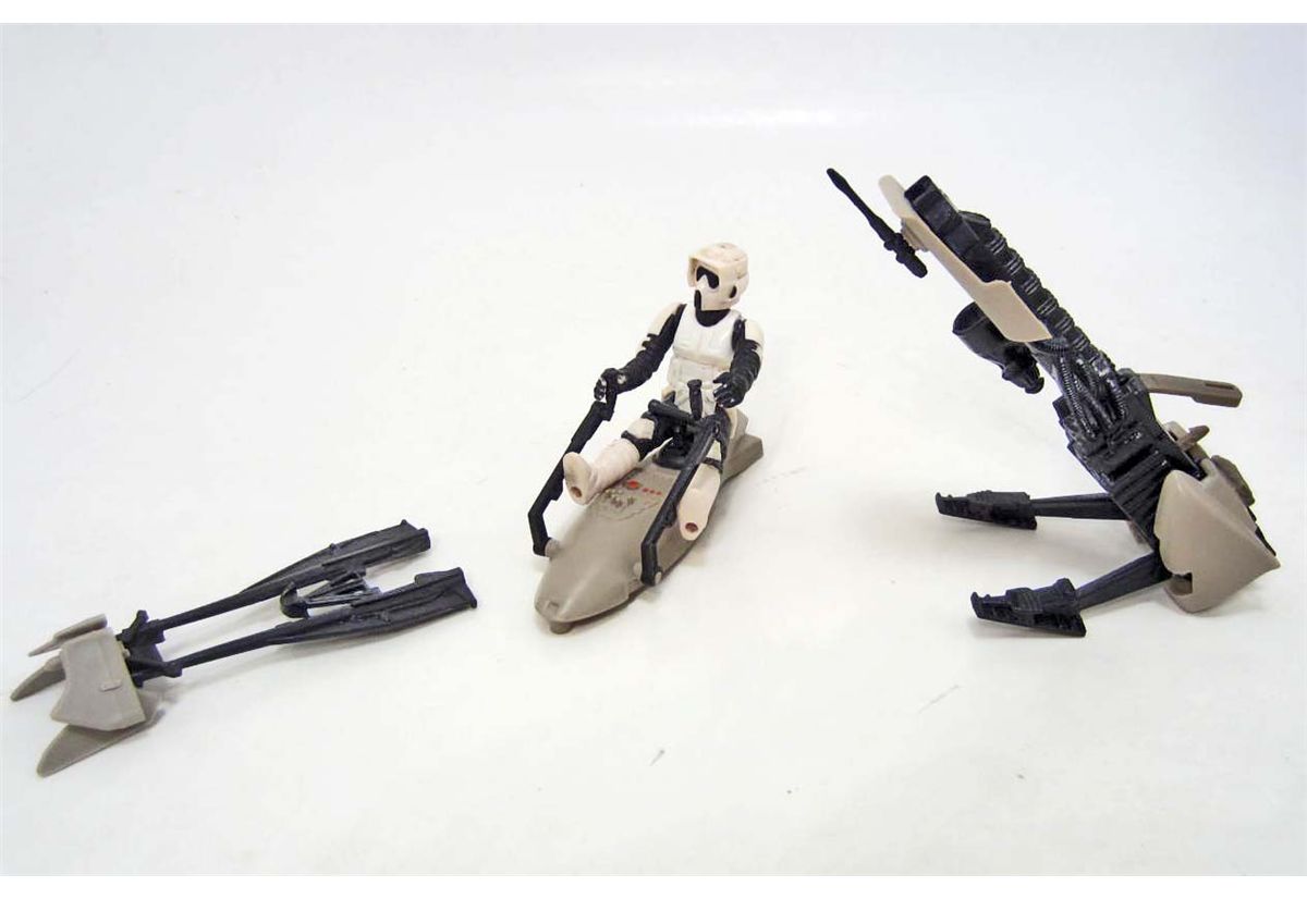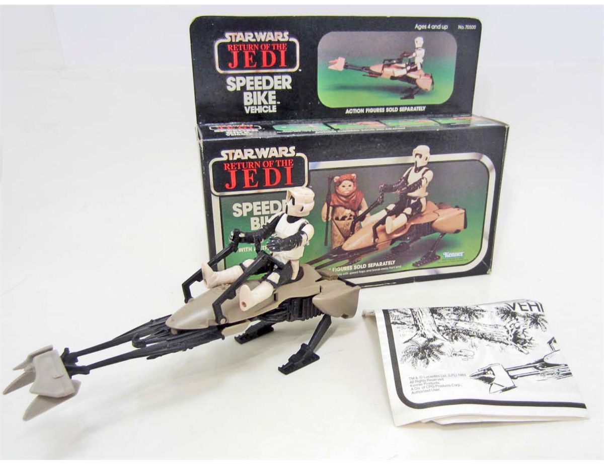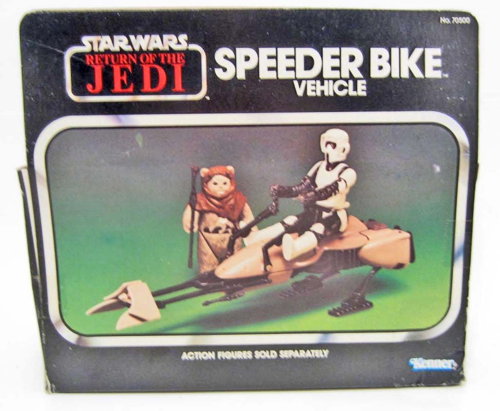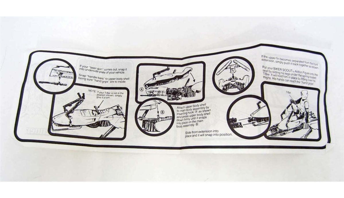 Includes Scout Trooper and original instructions in the original box! Still works, very nice played with condition, missing back flaps.
