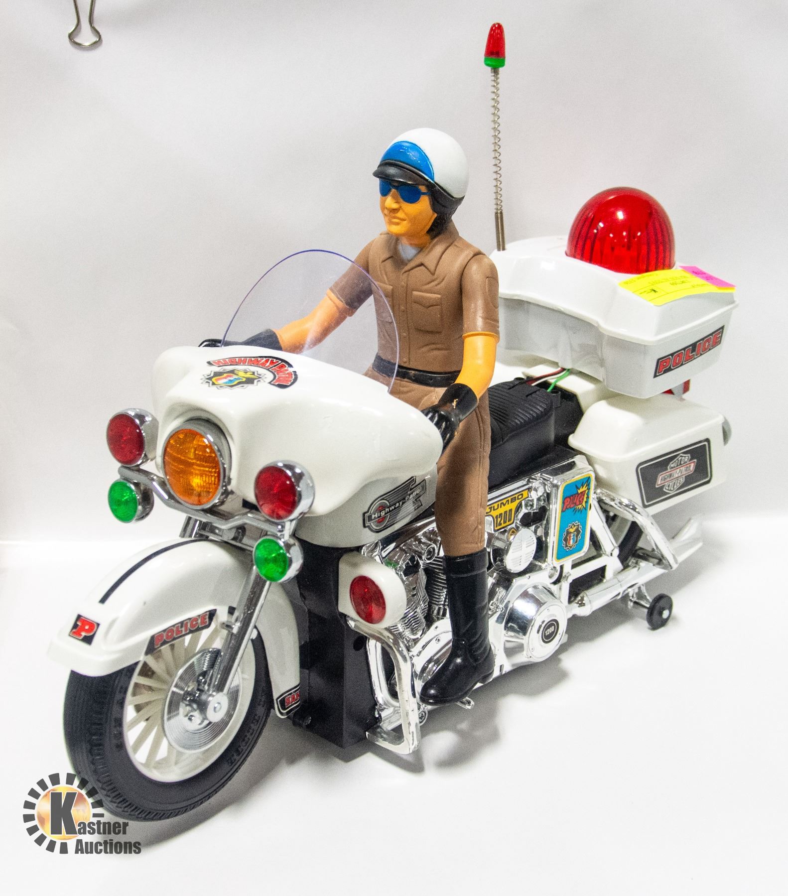HIGHWAY PATROL POLICE JUMBO MOTORCYCLE "TESTED" W/NEW BATTERIES **ALL ITEMS MUST BE REMOVED BY 5PM SATURDAY, FEBRUARY 15TH 2025. ALL REMAINING ITEMS WILL BE SUBJECT TO A $6.00 PER DAY STORAGE CHARGE. ANY ITEMS REMAINING AFTER MONDAY, MARCH 10TH 2025 WILL BE CONSIDERED FORFEITED. NO REFUNDS WILL BE ISSUED FOR FORFEITED ITEMS. TO SCHEDULE A PICK UP APPOINTMENT CLICK HERE