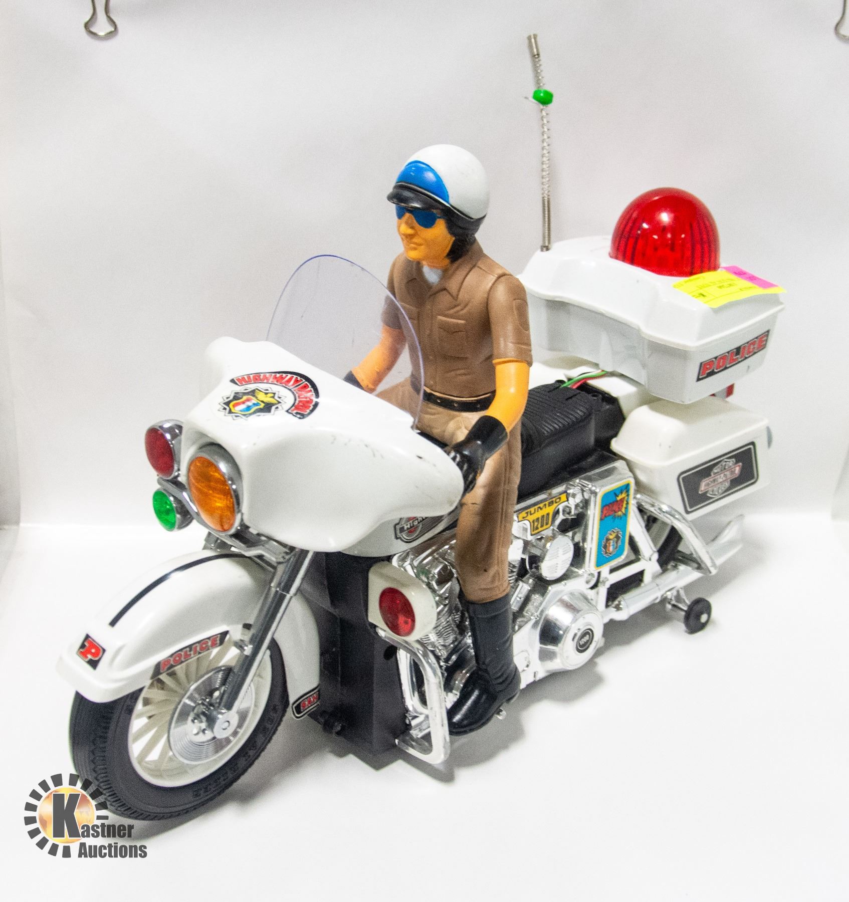 HIGHWAY PATROL POLICE JUMBO MOTORCYCLE "TESTED" W/NEW BATTERIES **ALL ITEMS MUST BE REMOVED BY 5PM SATURDAY, FEBRUARY 15TH 2025. ALL REMAINING ITEMS WILL BE SUBJECT TO A $6.00 PER DAY STORAGE CHARGE. ANY ITEMS REMAINING AFTER MONDAY, MARCH 10TH 2025 WILL BE CONSIDERED FORFEITED. NO REFUNDS WILL BE ISSUED FOR FORFEITED ITEMS. TO SCHEDULE A PICK UP APPOINTMENT CLICK HERE