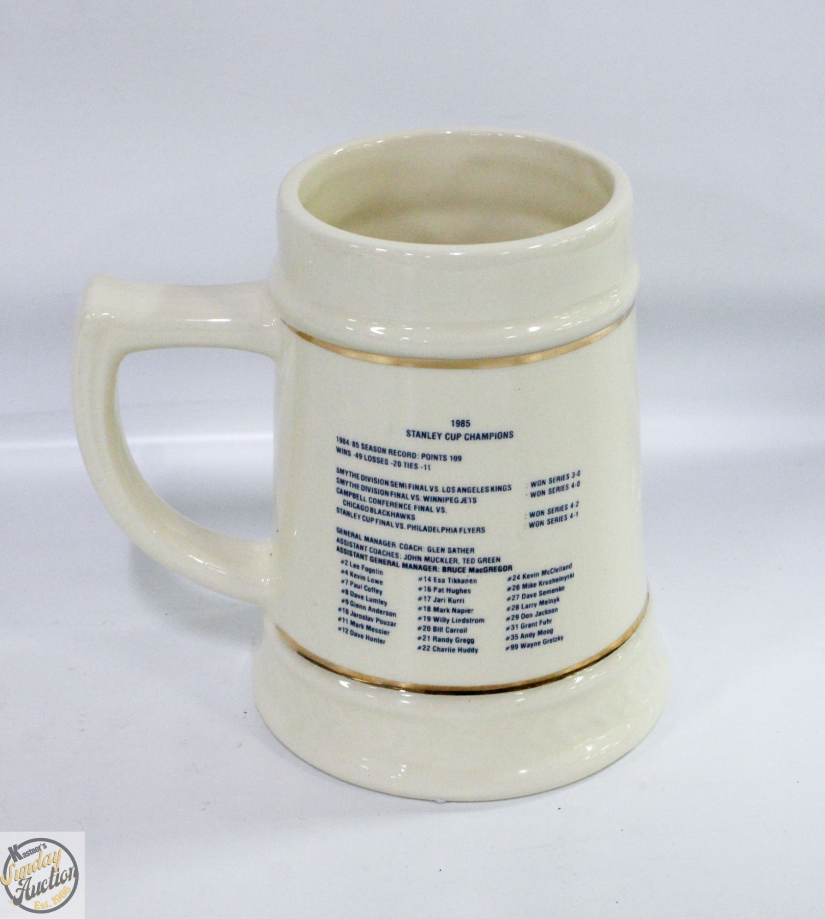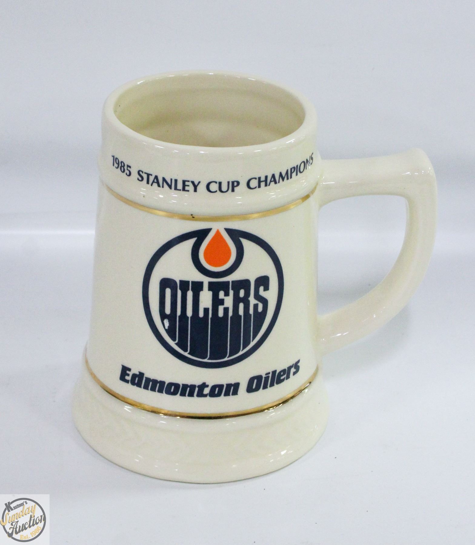 OILERS BEER MUG 2-SIDED **ALL ITEMS MUST BE REMOVED BY 5PM SATURDAY, NOVEMBER 1ST 2025. ALL REMAINING ITEMS WILL BE SUBJECT TO A $6.00 PER DAY STORAGE CHARGE. ANY ITEMS REMAINING AFTER MONDAY, NOVEMBER 17TH 2025 WILL BE CONSIDERED FORFEITED. NO REFUNDS WILL BE ISSUED FOR FORFEITED ITEMS. TO SCHEDULE A PICK UP APPOINTMENT CLICK HERE