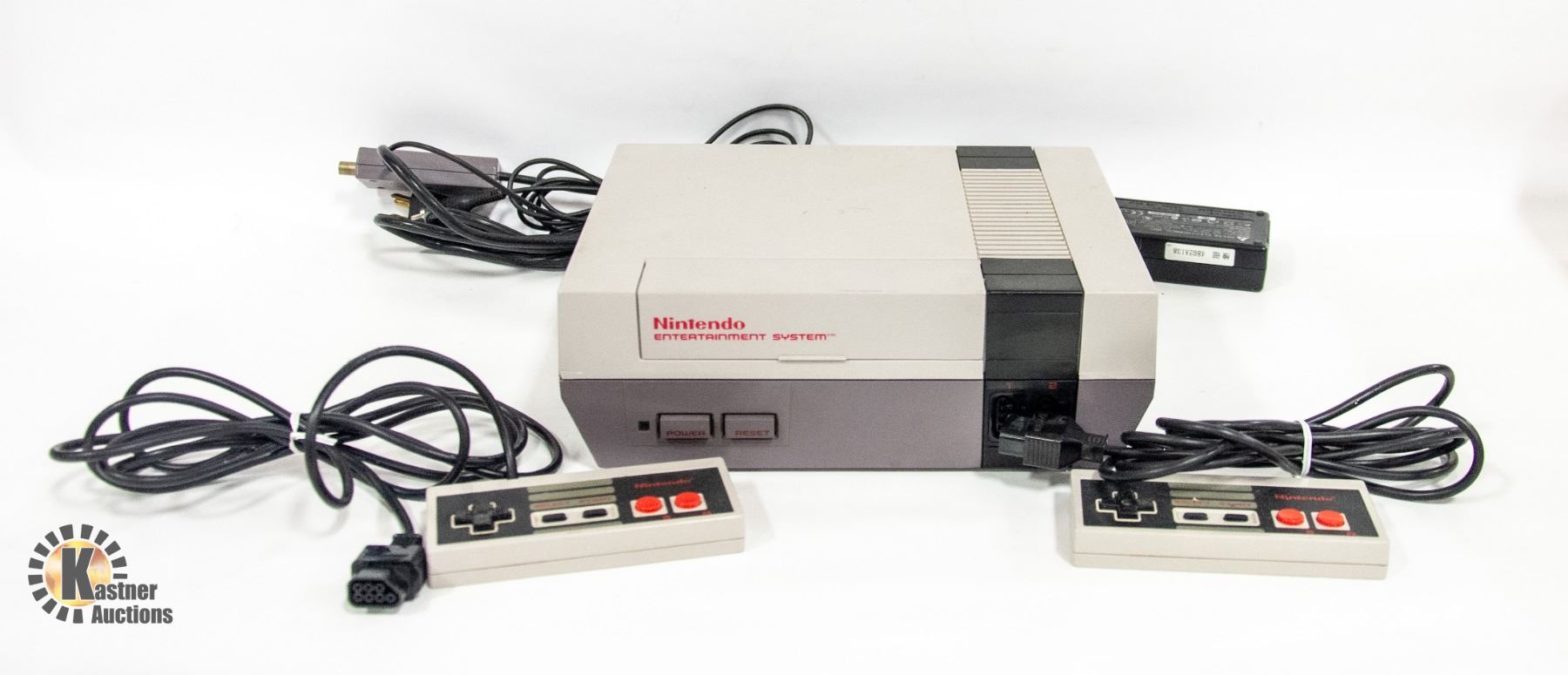 SYSTEM - MODEL #NES-001, GAMING CONSOLE COMPLETE WITH POWER CORD, TV CONNECTION, TWO ORIGINAL CONTROLLERS - TESTED & WORKING **ALL ITEMS MUST BE REMOVED BY 5PM SATURDAY, OCTOBER 7TH 2023. ALL REMAINING ITEMS WILL BE SUBJECT TO A $6.00 PER DAY STORAGE CHARGE. ANY ITEMS REMAINING AFTER MONDAY, OCTOBER 23RD, 2023 WILL BE CONSIDERED FORFEITED. NO REFUNDS WILL BE ISSUED FOR FORFEITED ITEMS. TO SCHEDULE A PICK UP APPOINTMENT CLICK HERE