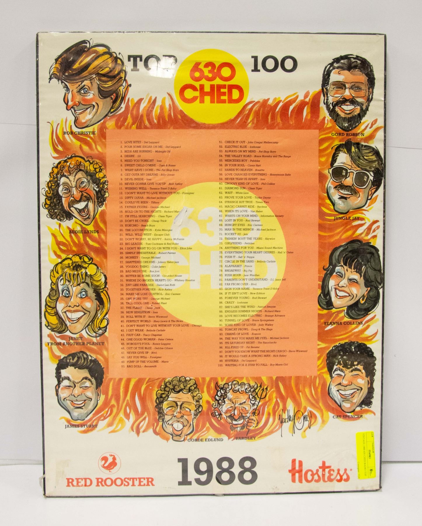 100 SONG LIST SPNSORS RED ROOSTER/HOSTESS WITH ALL RADIO HOSTS 18 X 24
