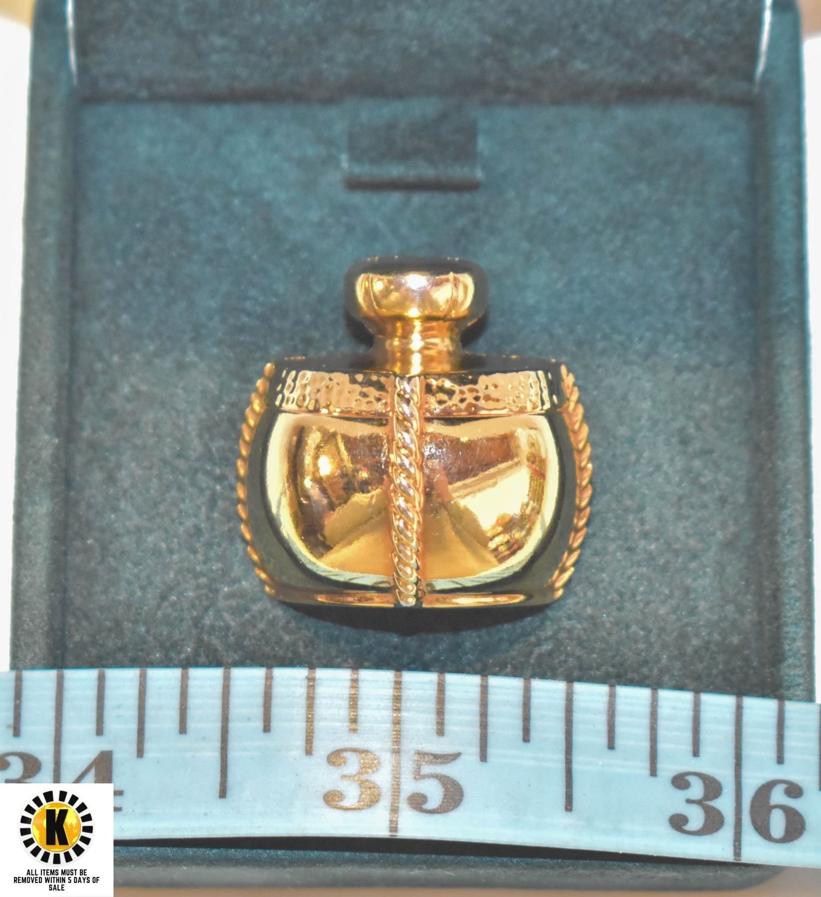 CHAMPAGNE PERFUME BOTTLE BROOCH IN GIFT BOX, SIGNED YSL