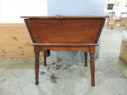 VINTAGE 22X15X22 PINE SEWING FLIP TOP CABINET. SPINDLE LEGS. AS SHOWN. VIEW PICTURE FOR DETAIL.