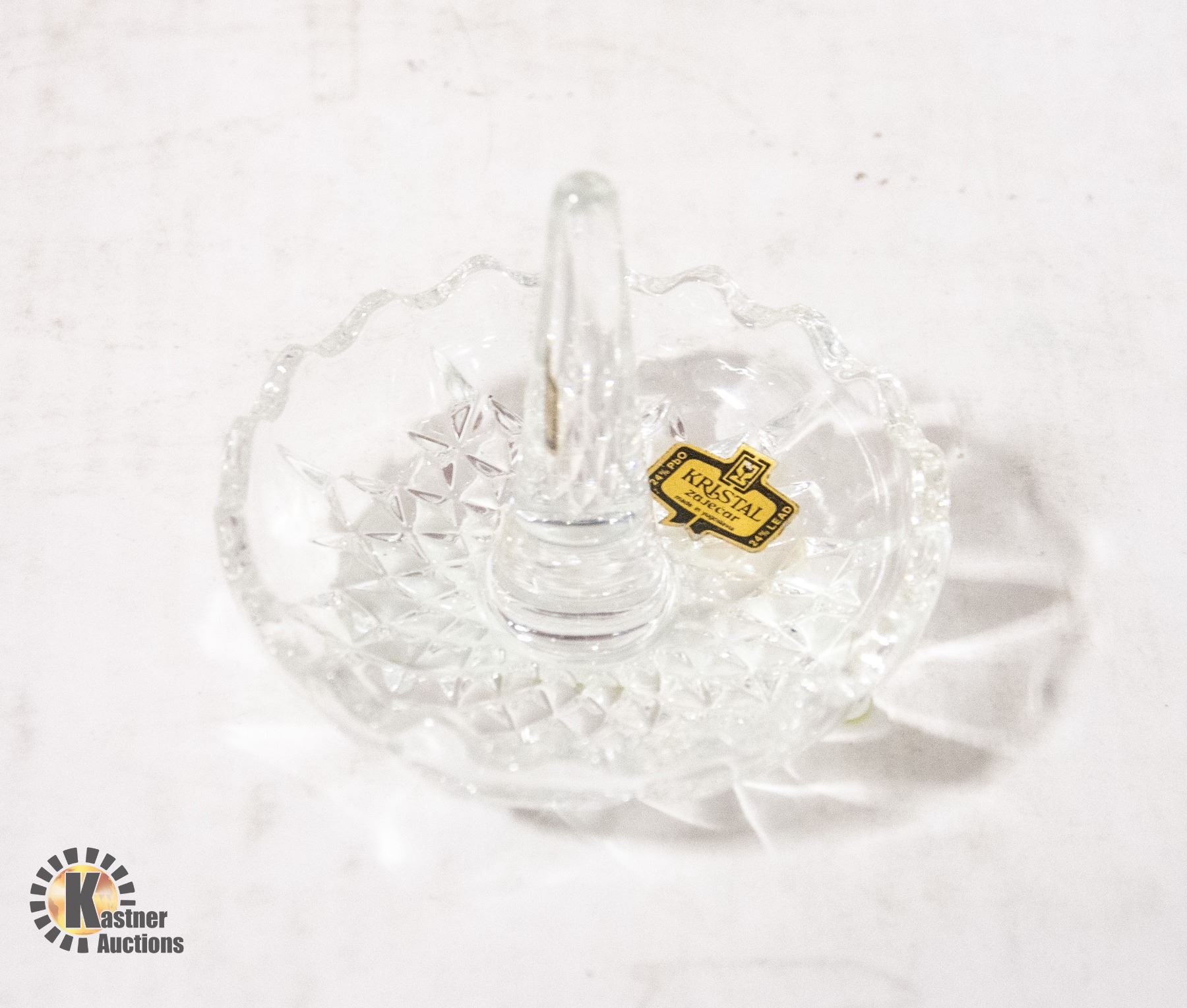 VINTAGE 24% LEAD CRYSTAL RING HOLDER, MADE IN