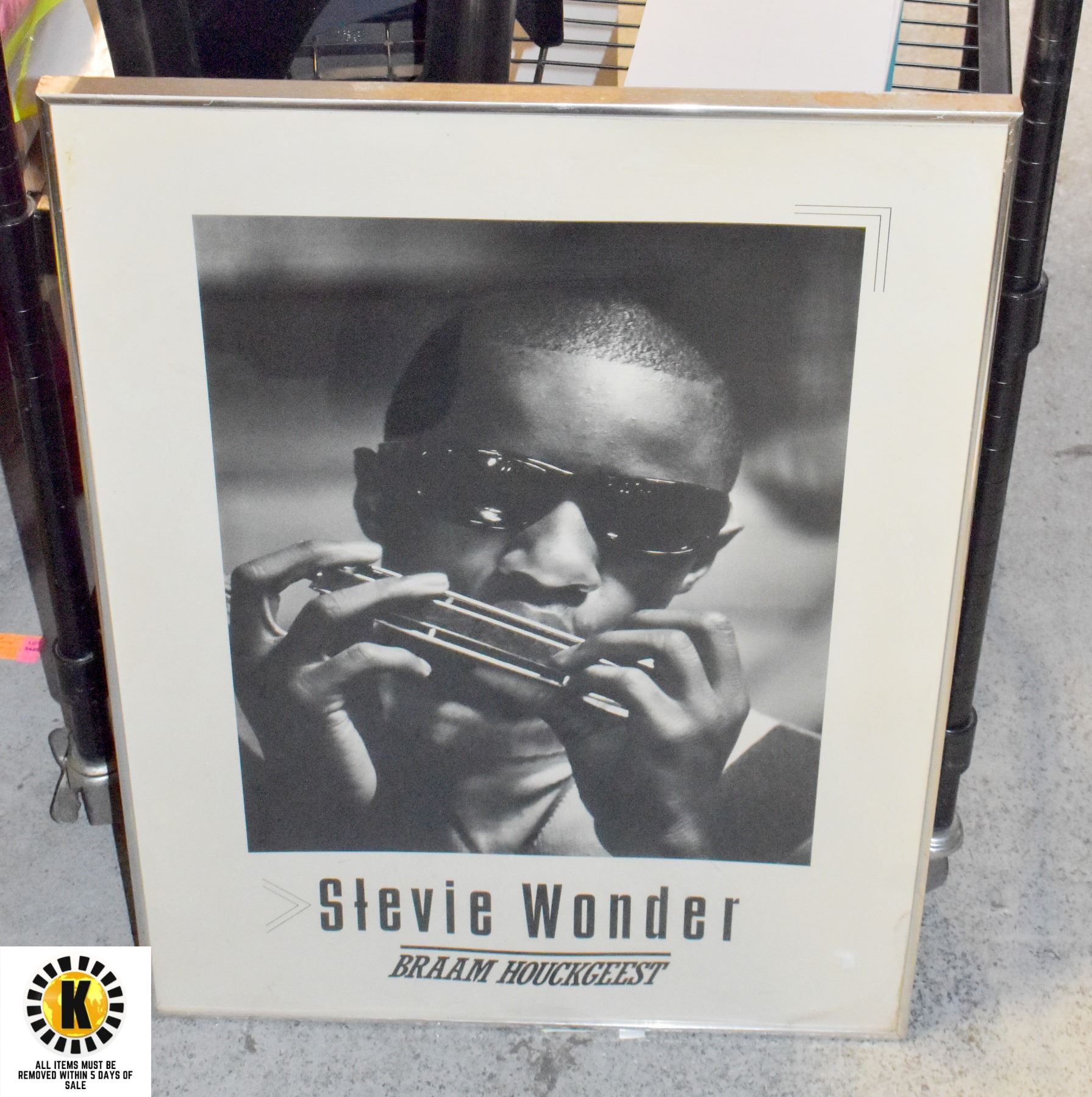 VINTAGE 24X30 STEVIE WONDER FRAMED PICTURE-ESTATE