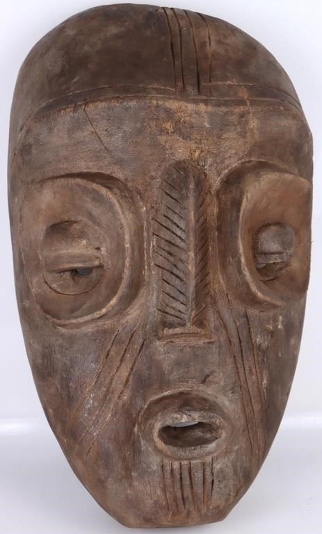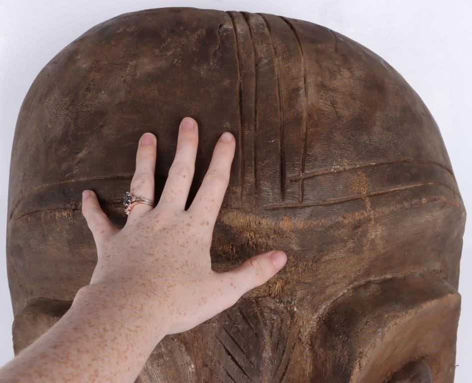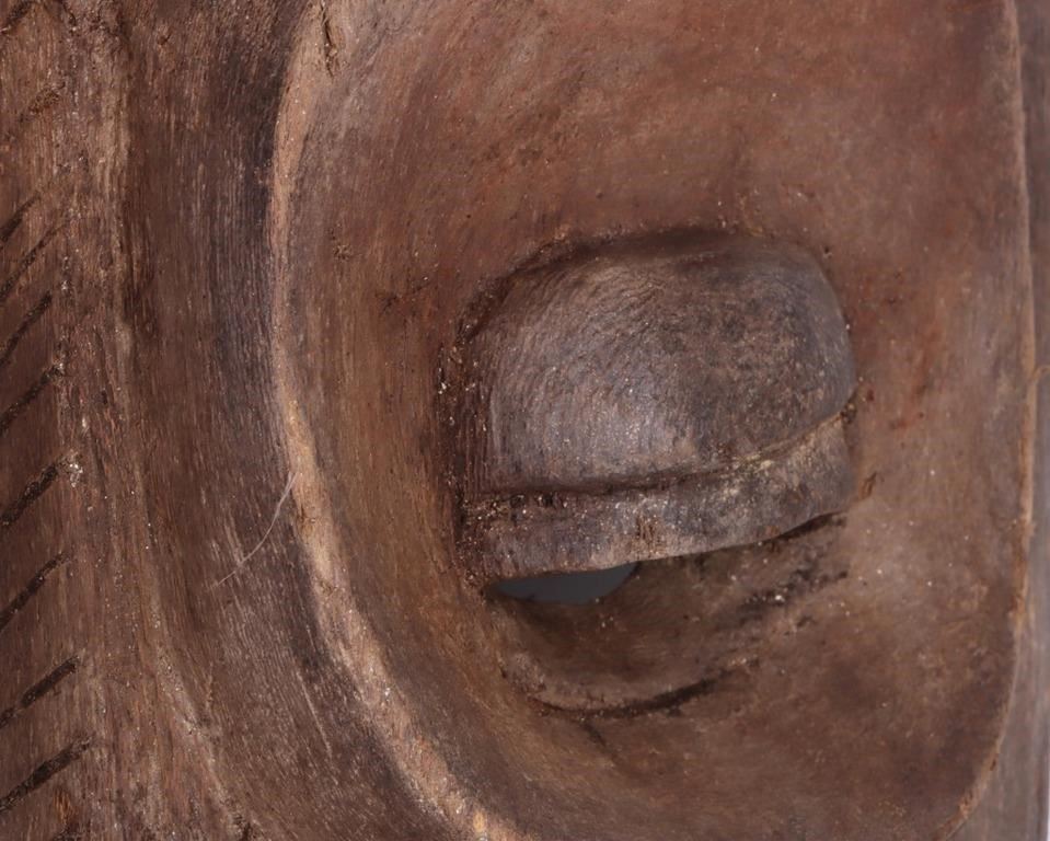 Vintage 27.5" African wooden hanging wall mask to include a unique and beautiful carved design along the "face" of the wooden mask.