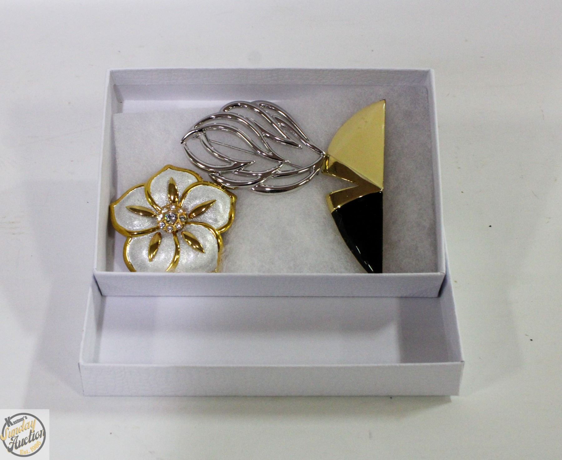 GOLD TONE FLOWER RHINSTONE CENTER W/MONET & OMJEN SIGNED BROOCHES **ALL ITEMS MUST BE REMOVED BY 5PM SATURDAY, NOVEMBER 1ST 2025. ALL REMAINING ITEMS WILL BE SUBJECT TO A $6.00 PER DAY STORAGE CHARGE. ANY ITEMS REMAINING AFTER MONDAY, NOVEMBER 17TH 2025 WILL BE CONSIDERED FORFEITED. NO REFUNDS WILL BE ISSUED FOR FORFEITED ITEMS. TO SCHEDULE A PICK UP APPOINTMENT CLICK HERE