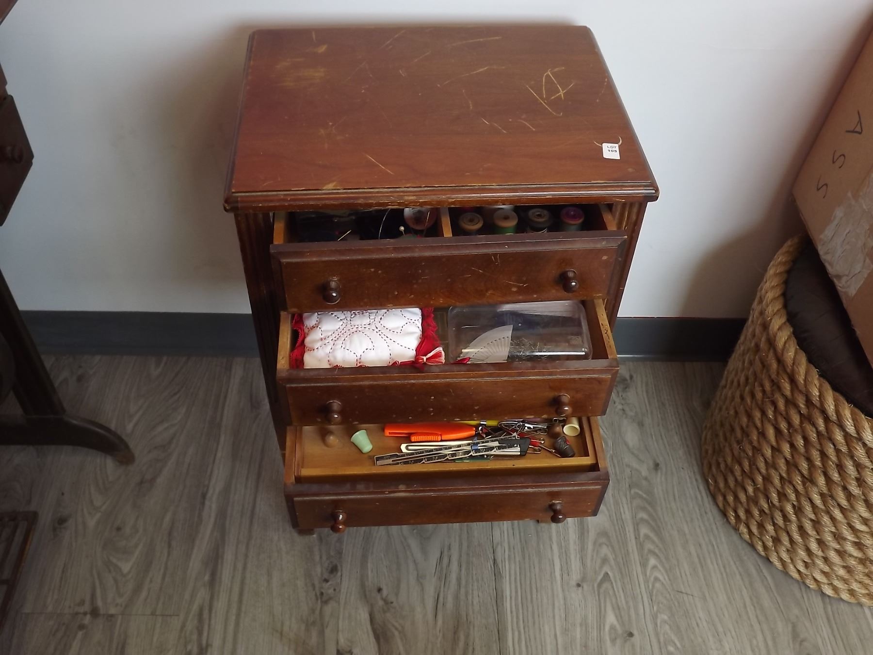 VINTAGE 3 DRAWER SEWING CABINET W/ CONTENTS