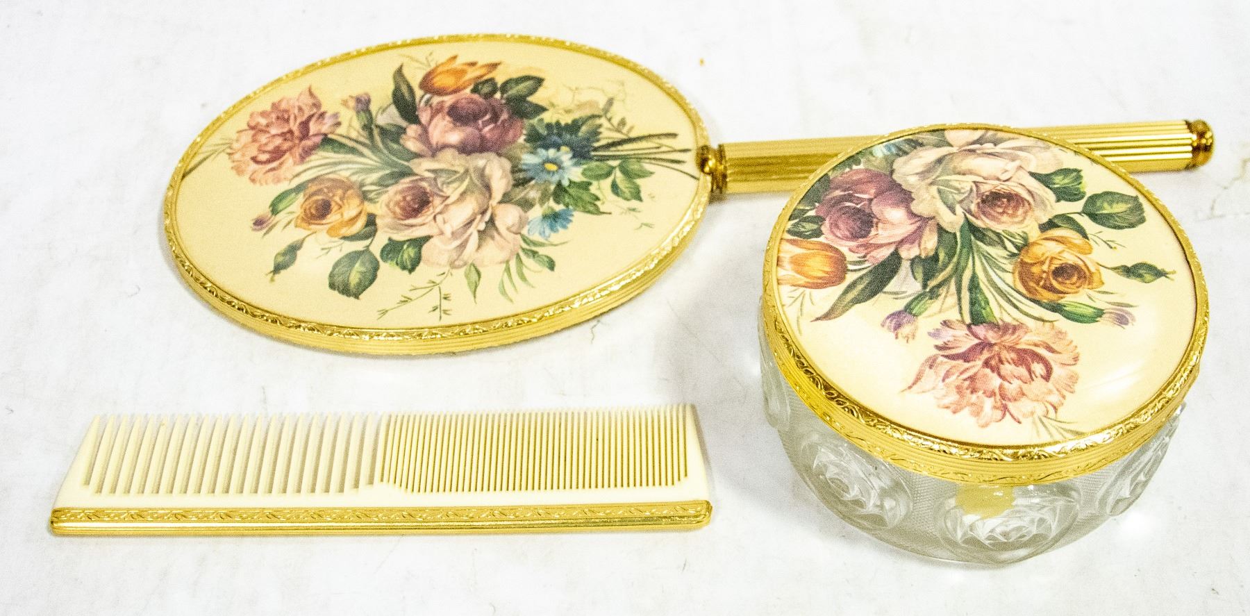 MATCHING OBERGLASS AUSTRIA TRINKET BOX, BRUSH, MIRROR
