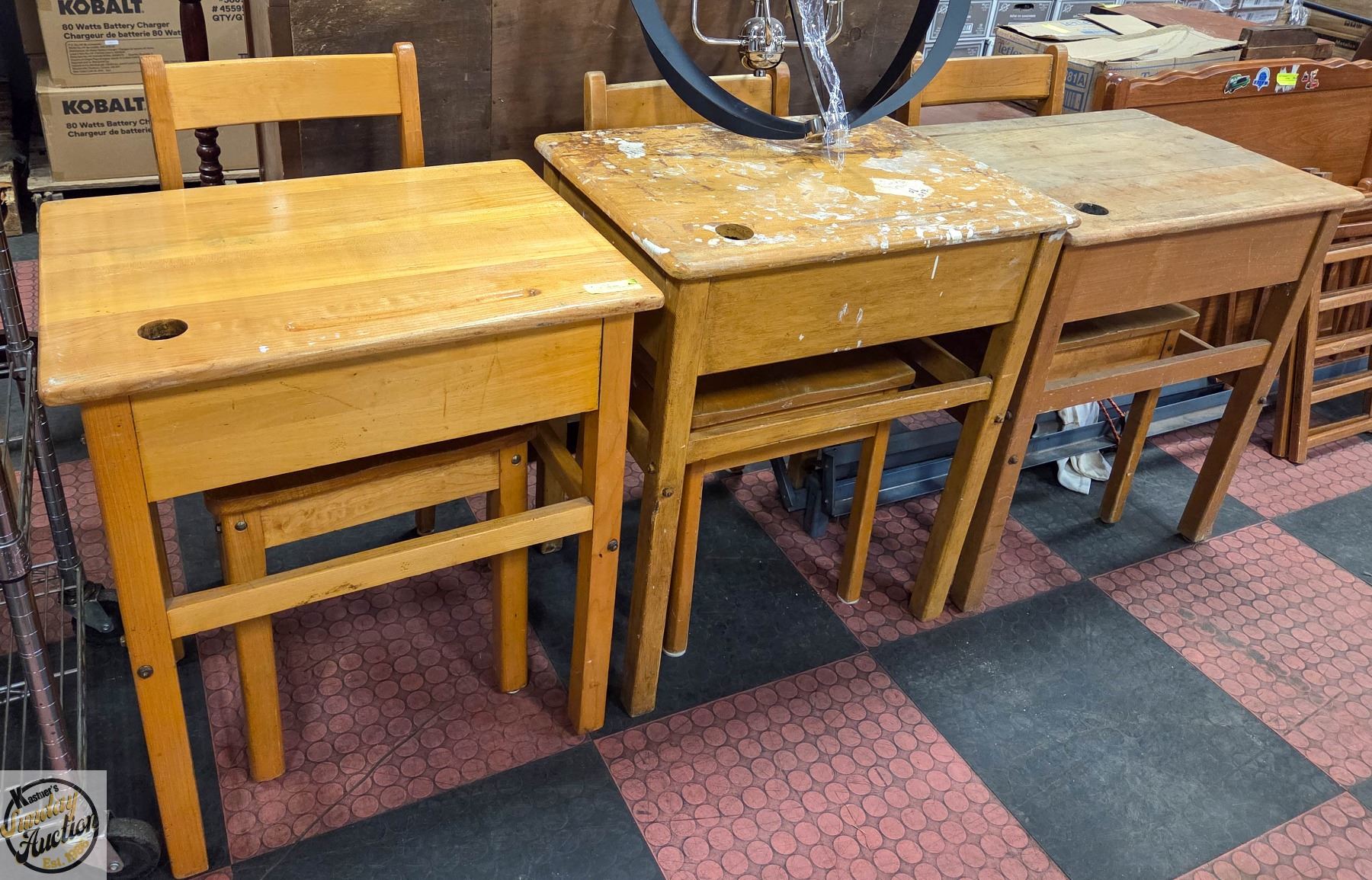 VINTAGE 3 SCHOOL DESKS WITH CHAIRS