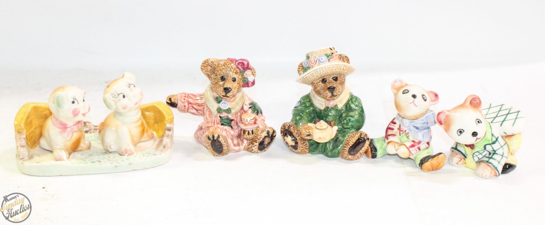 BEARWARE POTTERY SIGNED W/2 DOGS ON STAND HANDPAINTED & 2 PANDA BEARS (UNUSED) **ALL ITEMS MUST BE REMOVED BY 5PM SATURDAY, JULY 26th 2025. ALL REMAINING ITEMS WILL BE SUBJECT TO A $6.00 PER DAY STORAGE CHARGE. ANY ITEMS REMAINING AFTER MONDAY, AUGUST 11TH 2025 WILL BE CONSIDERED FORFEITED. NO REFUNDS WILL BE ISSUED FOR FORFEITED ITEMS. TO SCHEDULE A PICK UP APPOINTMENT CLICK HERE