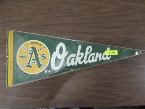 VINTAGE 30"L FELT PENNANT OAKLAND A'S PROTECTIVE CASE. AS SHOWN. VIEW PICTURE FOR DETAIL.