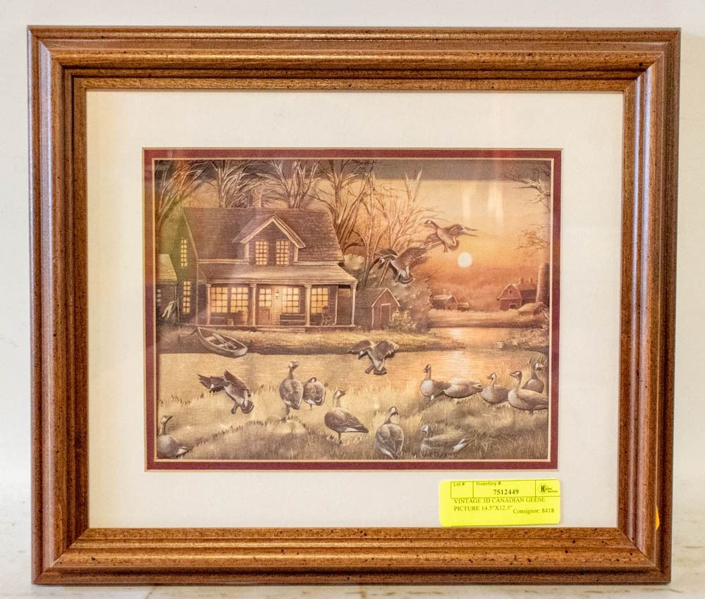 VINTAGE 3D CANADIAN GEESE PICTURE 14.5"X12.5"