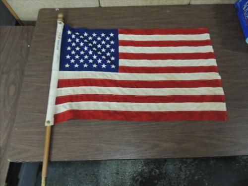 VINTAGE 3X2 50 STAR UNITED STATES FLAG, MAPLE POLE