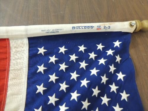 VINTAGE 3X2 50 STAR UNITED STATES FLAG, MAPLE POLE. NICE QUALITY MARTIN'S FLAG COMPANY. AS SHOWN. VIEW PICTURE FOR DETAIL.