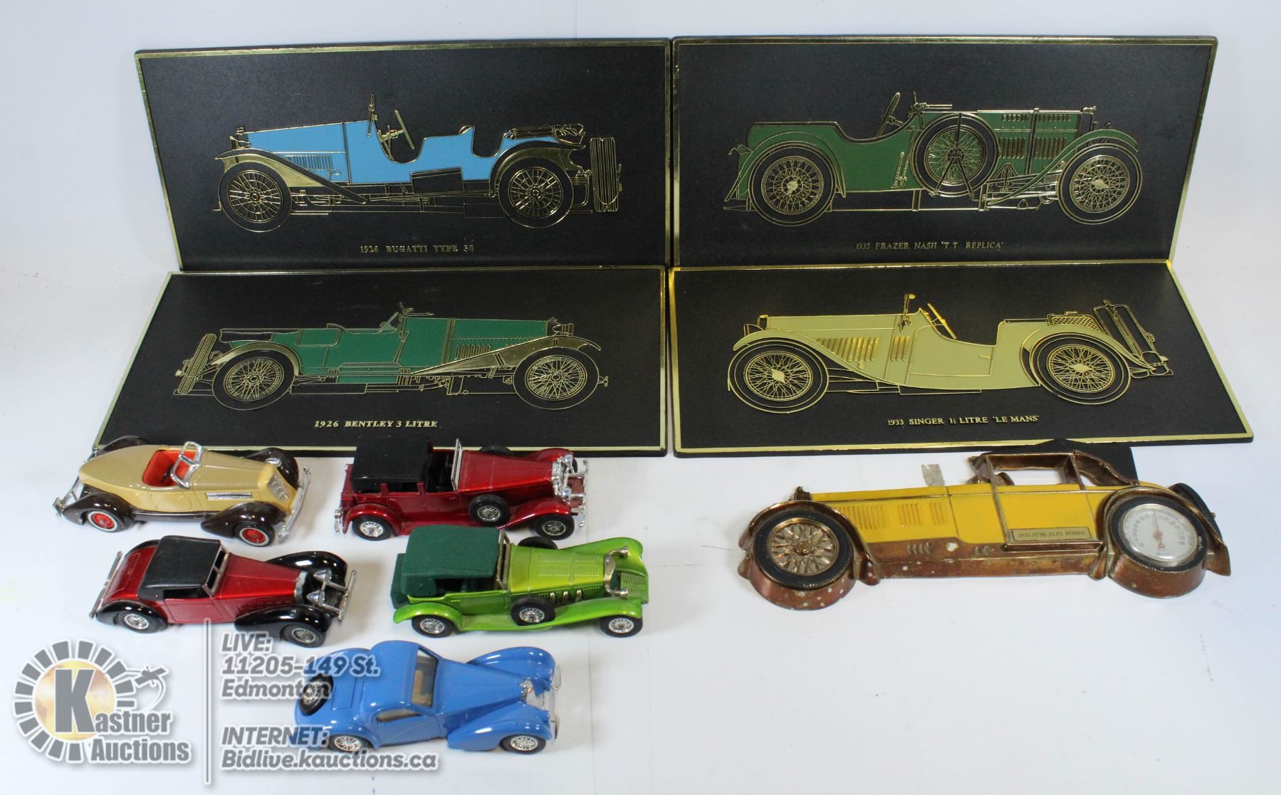 WALL PLAQUES ANTIQUE CARS MAADE IN ENGLAND W/5 ANTIQUE CARS DIE CAST MADE IN FRANCE