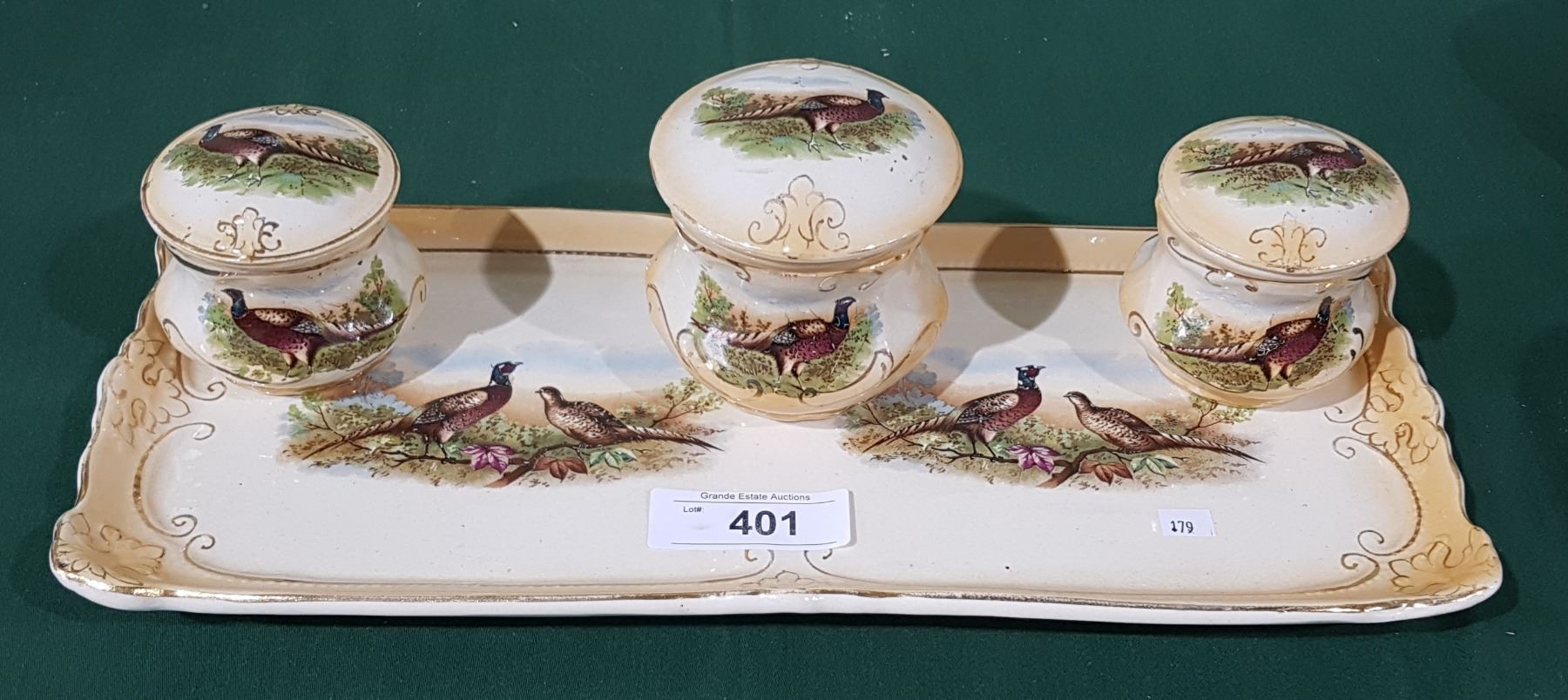 VINTAGE 4 PC VANITY SET W/PHEASANT MOTIF