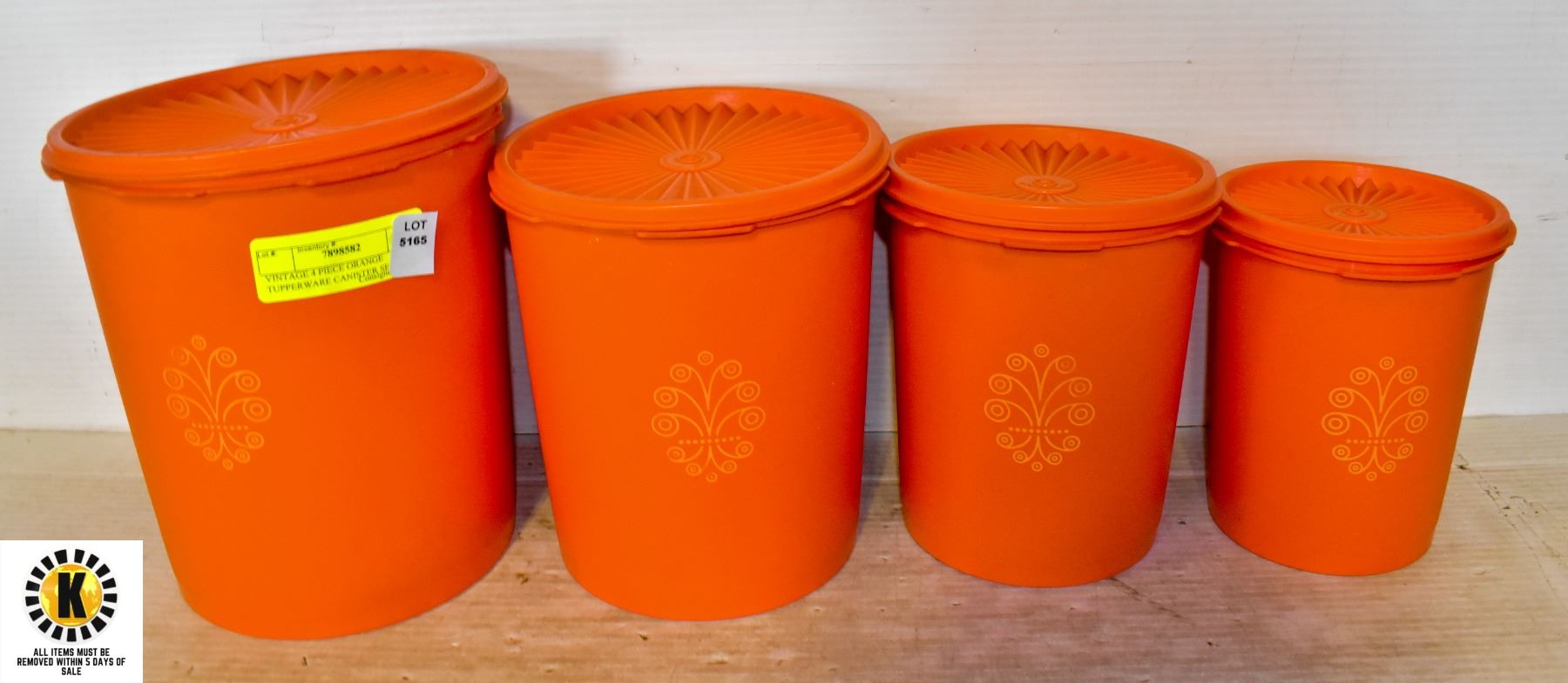 VINTAGE 4 PIECE ORANGE TUPPERWARE CANISTER SET