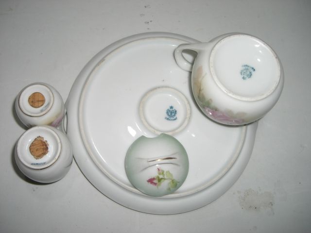 VINTAGE 4 PIECE SET SUGAR/SALT/PEPPER & PLATE STAMPED *GERMANY* RARE HARD TO FIND!! SET CAME OUT OF SAFE!! ***Coin, Currency & All Items Listed in this auction - Grades, Conditions and Values are not Safe Deposit Coins LLC Responsibilty. Grades, Condition and Values are determined by Consigner(s) & Buyers ONLY