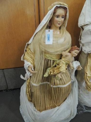 VINTAGE 48"H KNEELING PAPER MACHE & CLOTH MARY & BABY NATIVITY SCENE FIGURE. HIGH QUALITY EXCELLENT CONDITION. INDOOR USE. AS SHOWN. VIEW PICTURE FOR DETAIL.