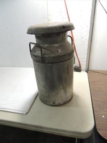 VINTAGE 5 GALLON METAL MILK CAN & LID NO MARKS. 10"D X 20"D. AS SHOWN. VIEW PICTURE FOR DETAIL.