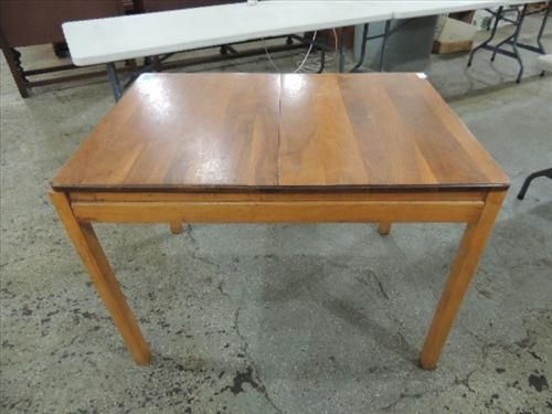 VINTAGE 58X30 WALNUT & MAPLE KITCHEN TABLE. FOLDING 12" INSERT LEAF. AS SHOWN. VIEW PICTURE FOR DETAIL.