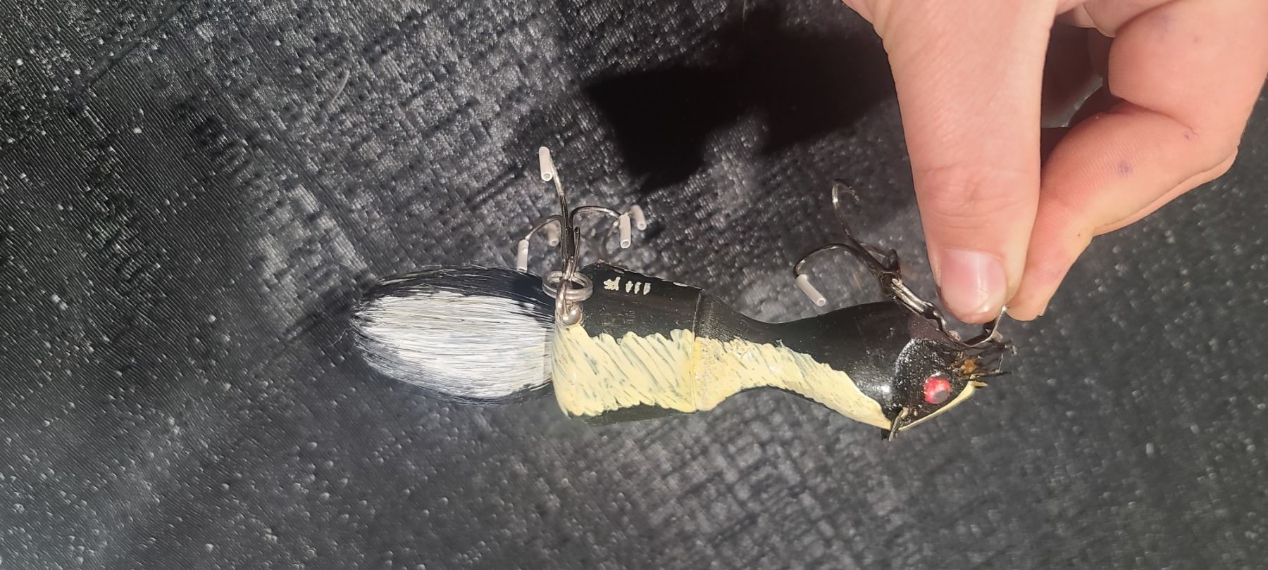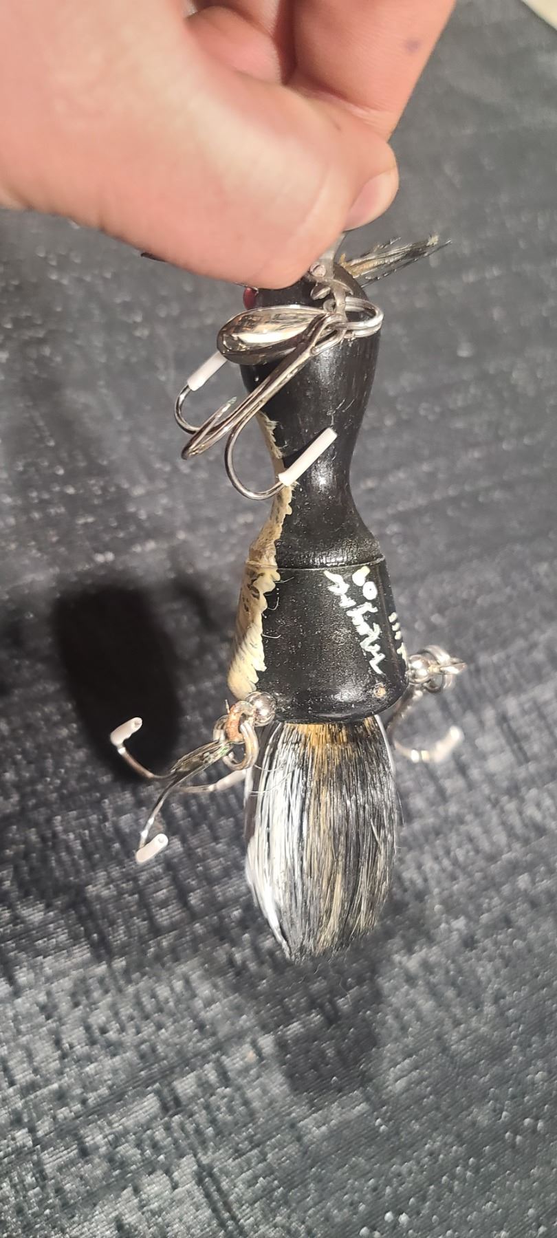 VINTAGE 6 INCH MOUSE LURE WITH BRISTLE TAIL SECTION MINT, MARKED MEYRU O9