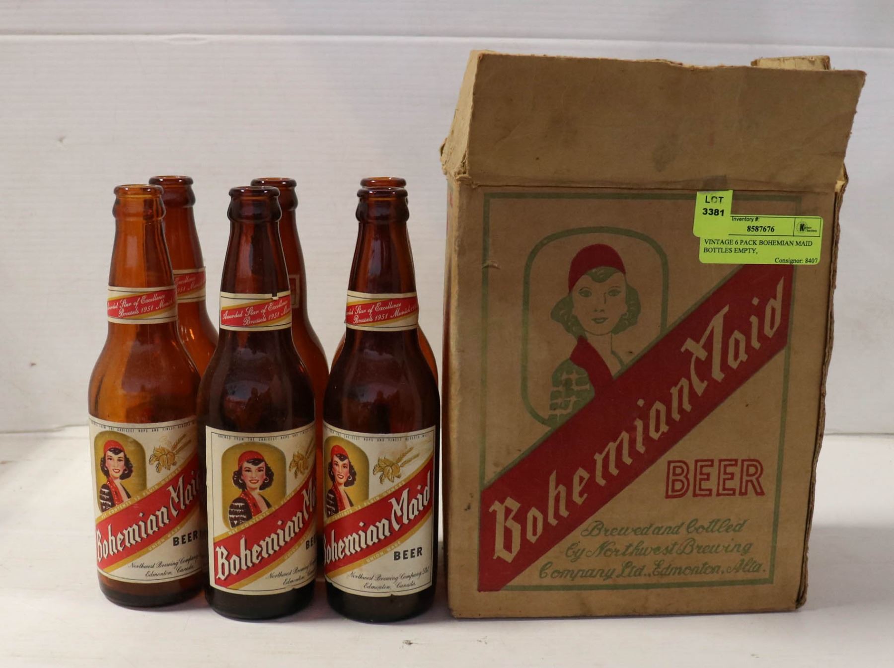 VINTAGE 6 PACK BOHEMIAN MAID BOTTLES EMPTY,