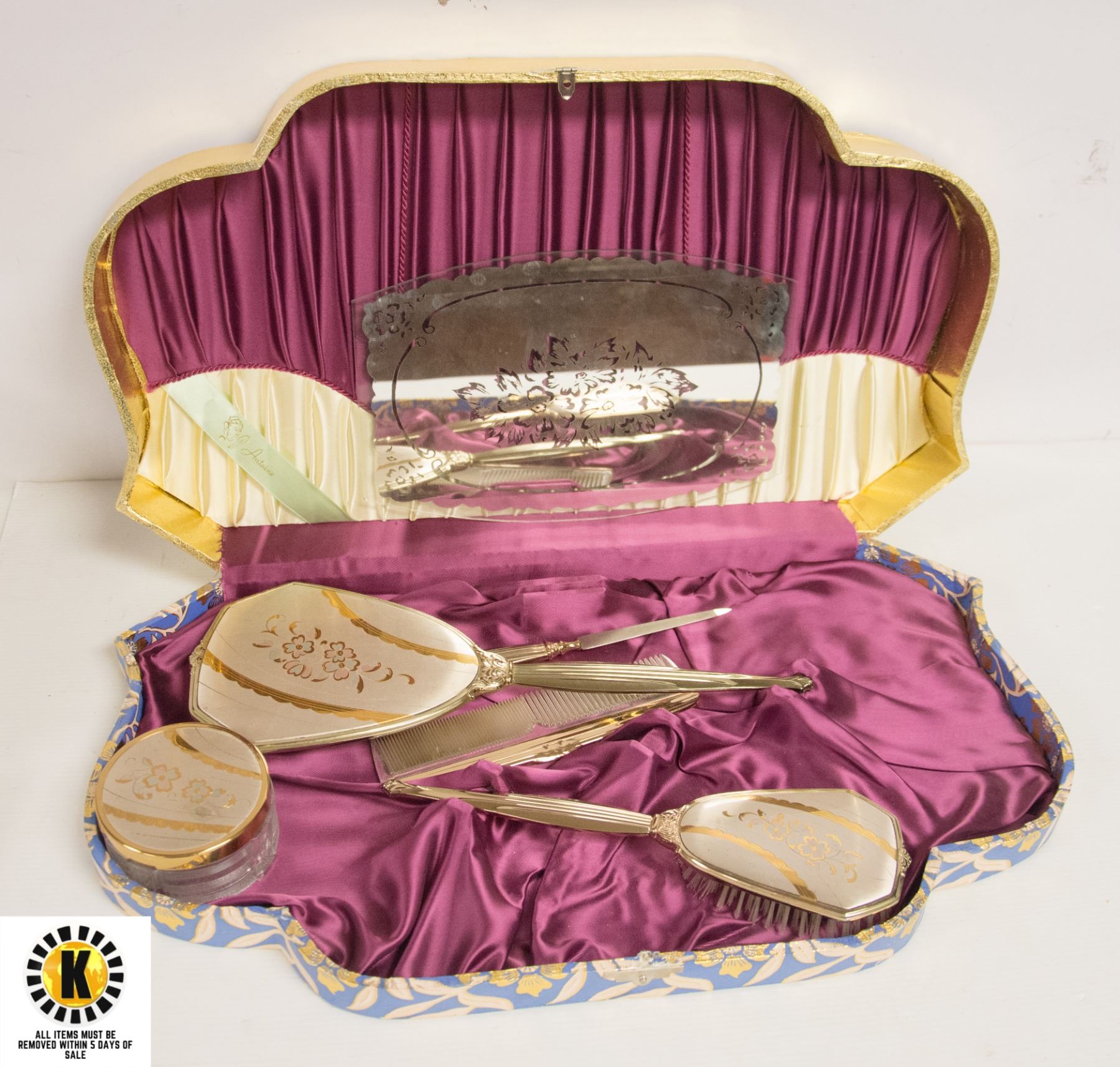 VINTAGE 6 PIECE DRESSER SET W/ TRAVEL CASE