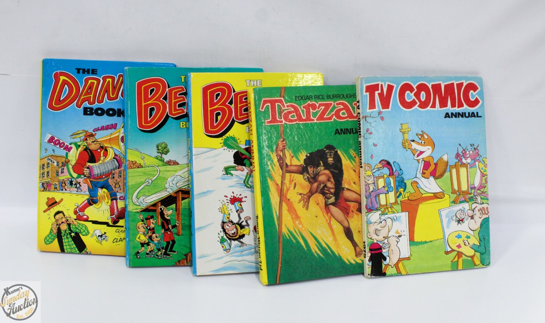 W/X2 BEANO BOTH 1986 & BROWN WATSON LTD 1973 TARZAN ANNUAL (UK) & TV COMIC 1979 HARDCOVER (NO RIPS/TEAR'S) **ALL ITEMS MUST BE REMOVED BY 5PM SATURDAY, OCTOBER 18TH 2025. ALL REMAINING ITEMS WILL BE SUBJECT TO A $6.00 PER DAY STORAGE CHARGE. ANY ITEMS REMAINING AFTER MONDAY, NOVEMBER 3RD 2025 WILL BE CONSIDERED FORFEITED. NO REFUNDS WILL BE ISSUED FOR FORFEITED ITEMS. TO SCHEDULE A PICK UP APPOINTMENT CLICK HERE