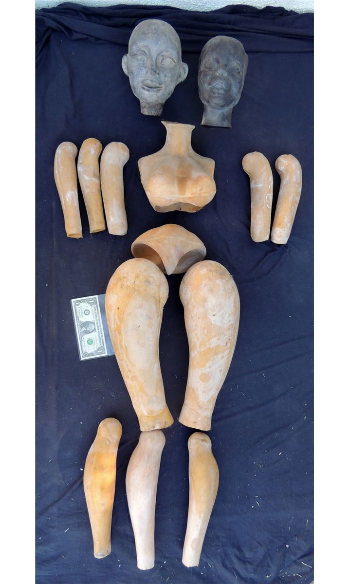 Offered here is a collection of castings for a near life size female puppet including two heads, chest piece, belly, legs and arms. Great to finish up yourself or make new molds for some project.