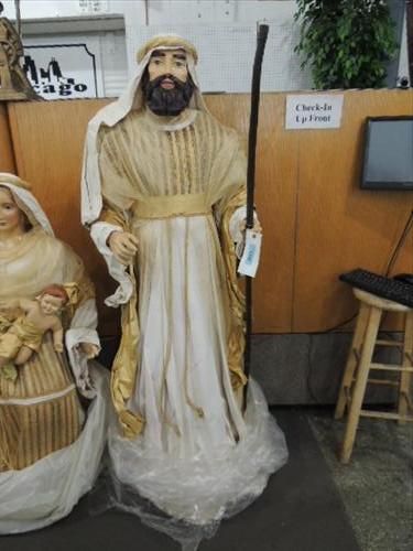 VINTAGE LIFE SIZE 66"H PAPER MACHE & CLOTH JOSEPH NATIVITY SCENE FIGURE. HIGH QUALITY EXCELLENT CONDITON. INDOOR USE. AS SHOWN. VIEW PICTURE FOR DETAIL.