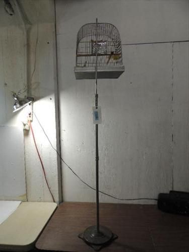 VINTAGE 67"H METAL STAND & BIRD CAGE, GOOD CONDITION. AS SHOWN. VIEW PICTURE FOR DETAIL.