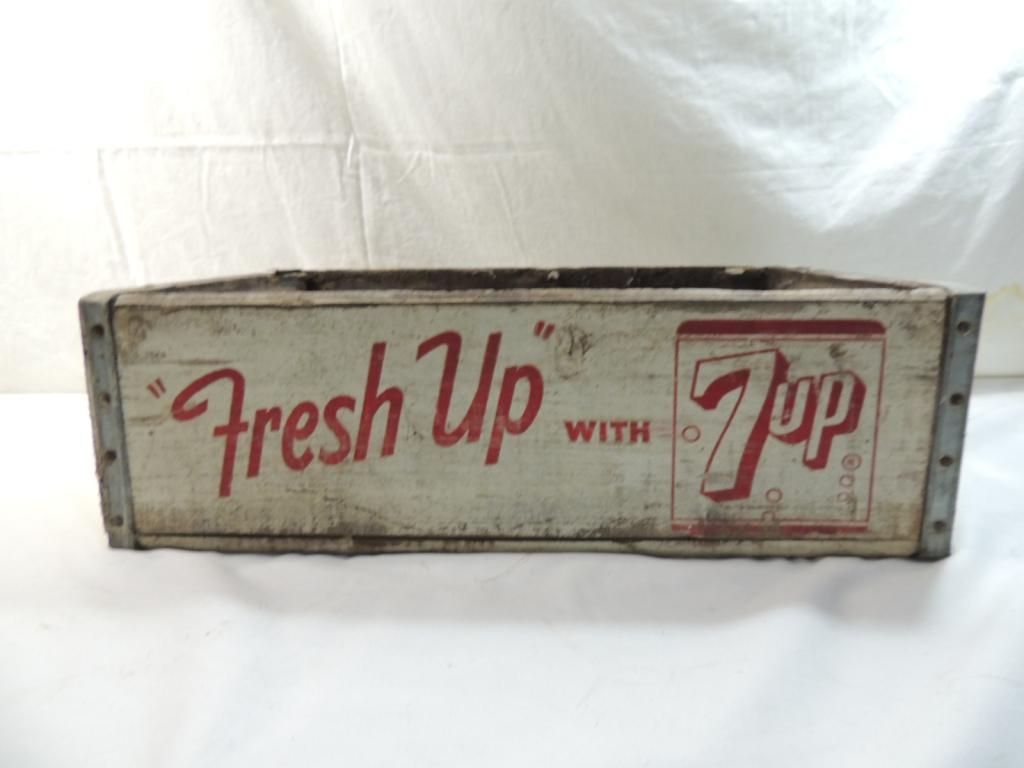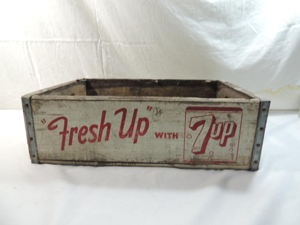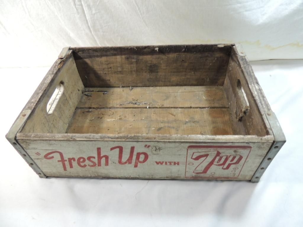VINTAGE 7UP WOODEN CRATE COLLECTIBLE. BOTTLE CRATE AS SHOWN SEE PHOTO FOR MORE DETAILS.