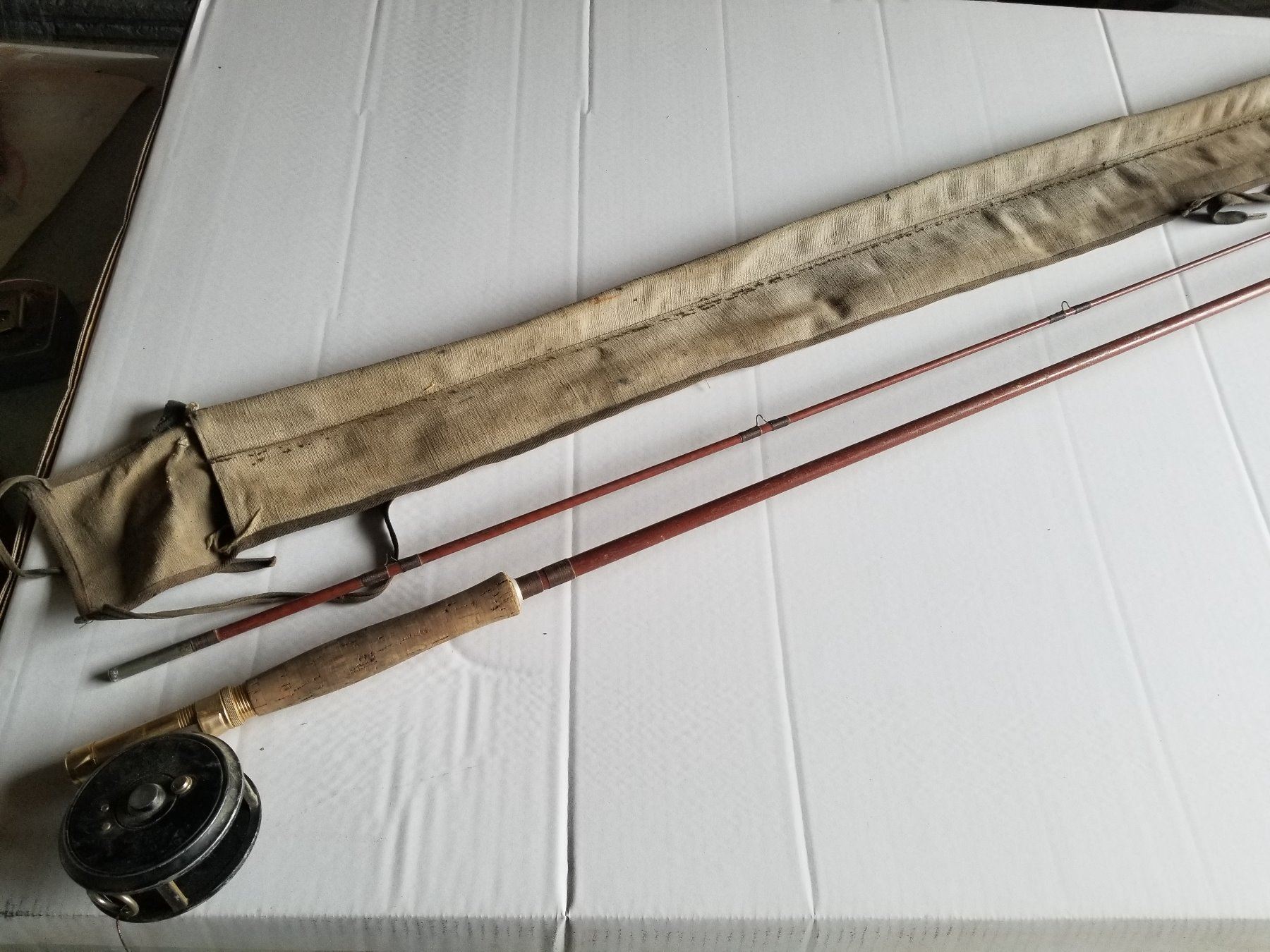 VINTAGE 9 FOOT FLY FISHING ROD WITH REEL, CANVAS, CASE (2 PIECE OCEAN CITY REEL)