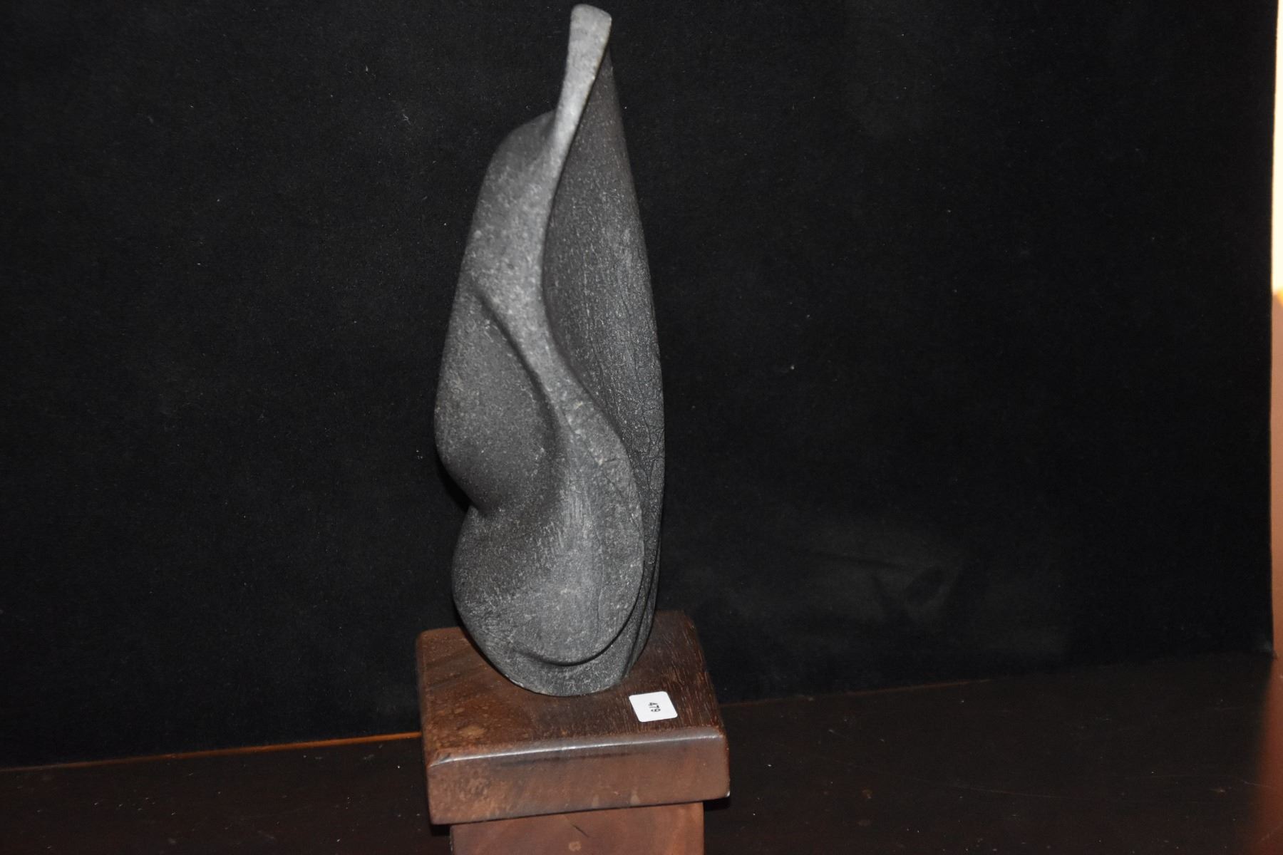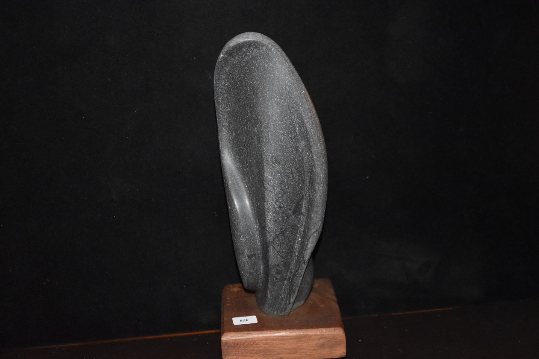 VINTAGE ABSTRACT STONE CARVING ON WOOD BASE