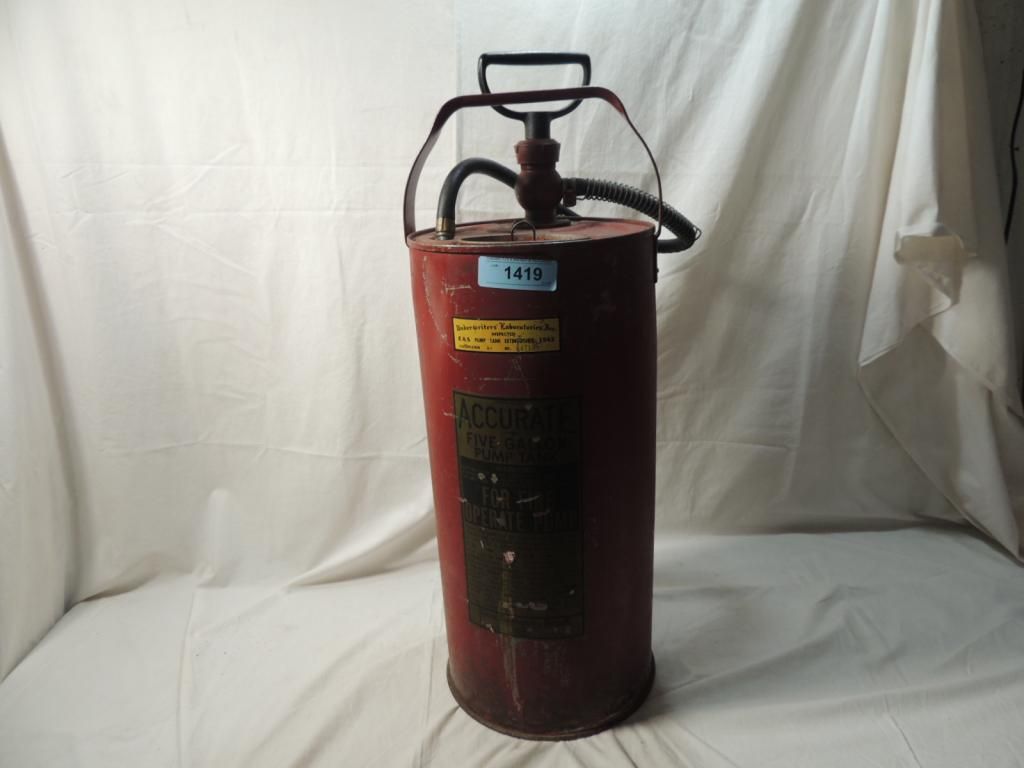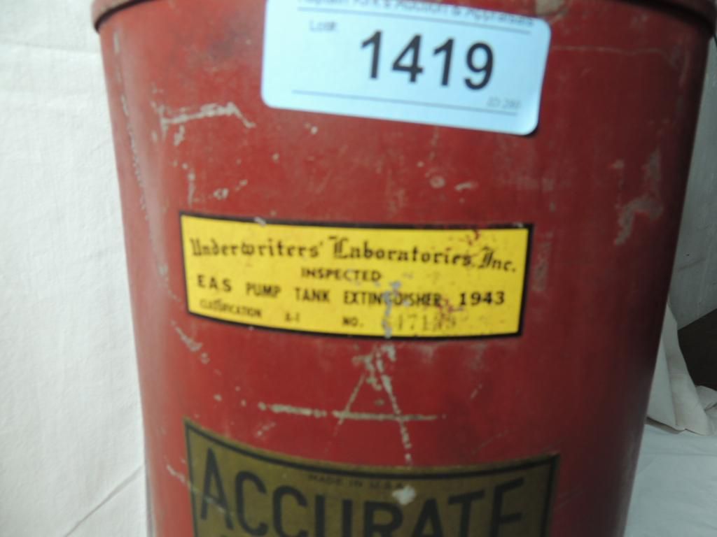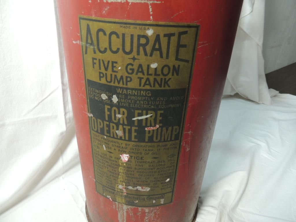 VITNAGE FIRE EXTENGISHER. UNDERWRITERS LABORATORIES. 1943. ACCURATE FIVE GALLON PUMP TANK. FOR FIRE OPERATE PUMP. AS SHOWN. SEE PHOTO FOR MORE DETAILS.