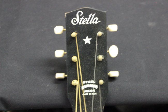 VINTAGE ACOUSTIC STELLA GUITAR IN ORIGINAL CASE - MISSING ONE STRING