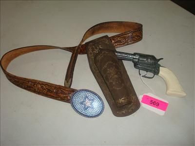 ACTOY? PONY BOY CAP GUN WITH LEATHER BELT AND HOLSTER. AS SHOWN. VIEW PICTURE FOR DETAIL.