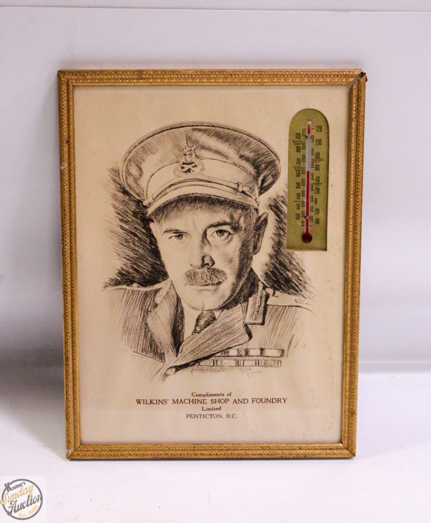 SCRETCH WITH THERMOMETER COMPLIMENTS OF WILKINS MACHINE SHOP AND FOUNDRY LIMITED PENTICTON, B.C. SIGNED B. MILNE 6' X 8" APPROX. **ALL ITEMS MUST BE REMOVED BY 5PM SATURDAY, NOVEMBER 15TH 2025. ALL REMAINING ITEMS WILL BE SUBJECT TO A $6.00 PER DAY STORAGE CHARGE. ANY ITEMS REMAINING AFTER MONDAY, DECEMBER 1ST 2025 WILL BE CONSIDERED FORFEITED. NO REFUNDS WILL BE ISSUED FOR FORFEITED ITEMS. TO SCHEDULE A PICK UP APPOINTMENT CLICK HERE