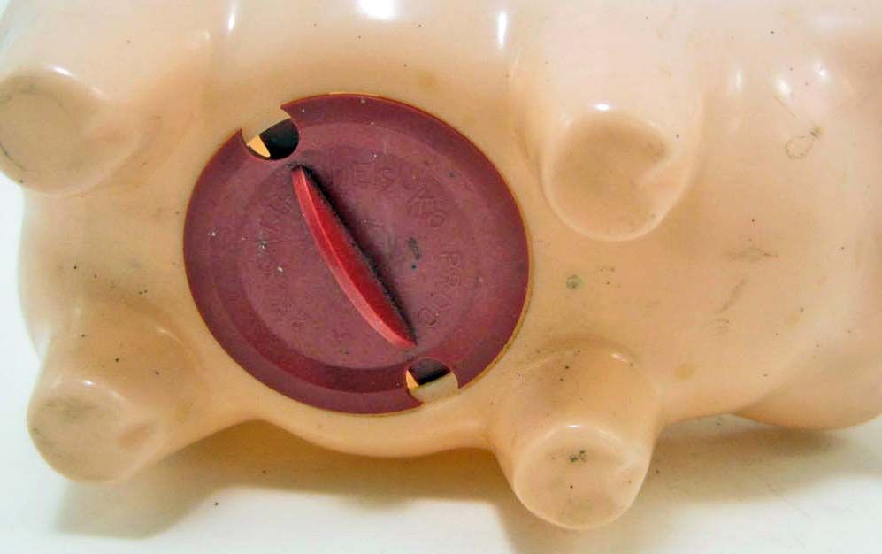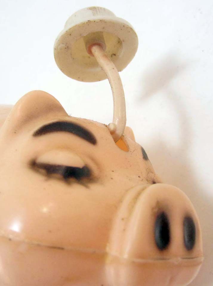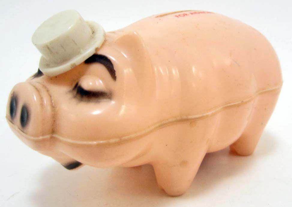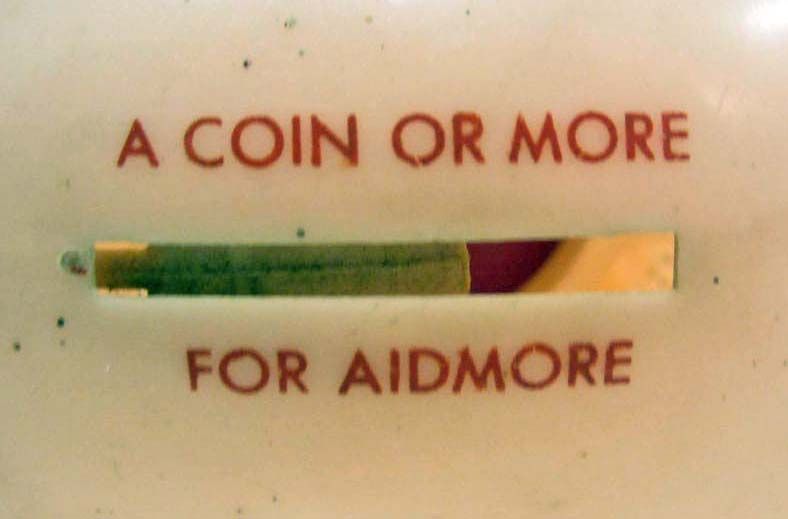 Top reads A Coin or More for Aidmore. Approx. 5" long. His top hat raises every time a coin is inserted.