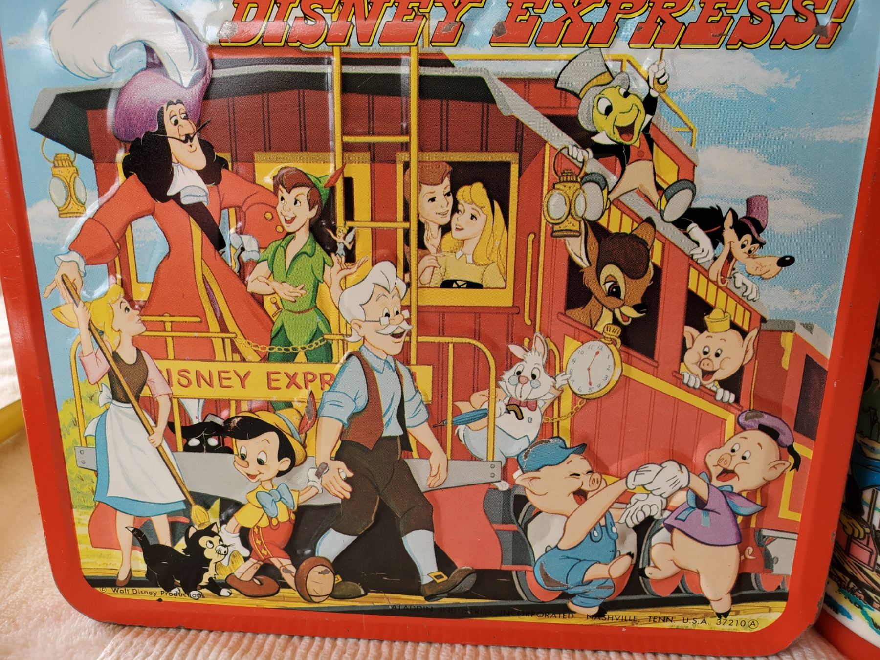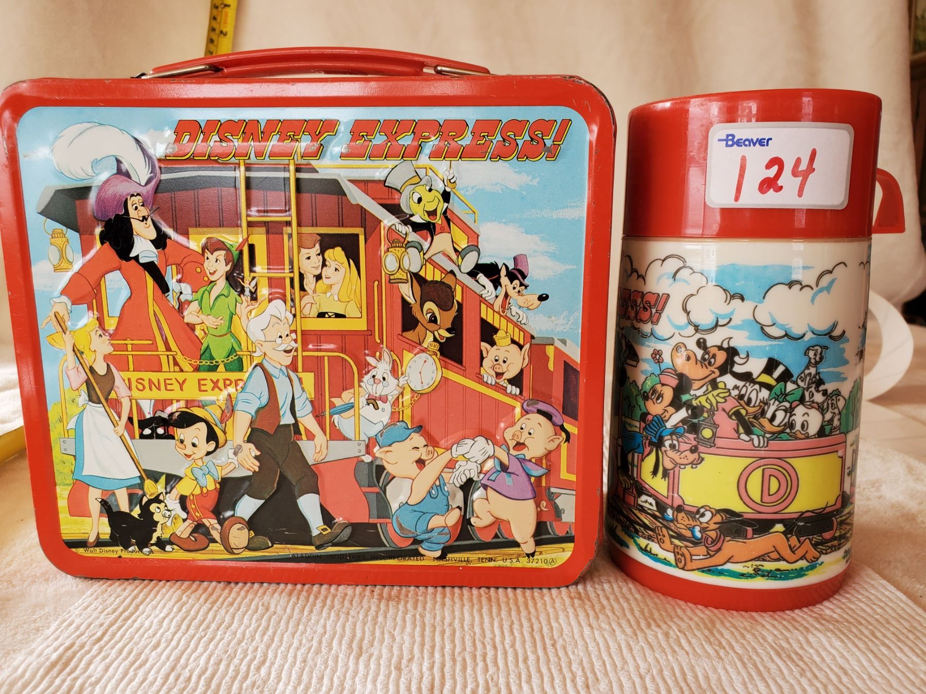 VINTAGE ALADDIN DISNEY EXPRESS THERMOS & LUNCH KIT - EXCELLENT ORIGINAL (EMBOSSED)