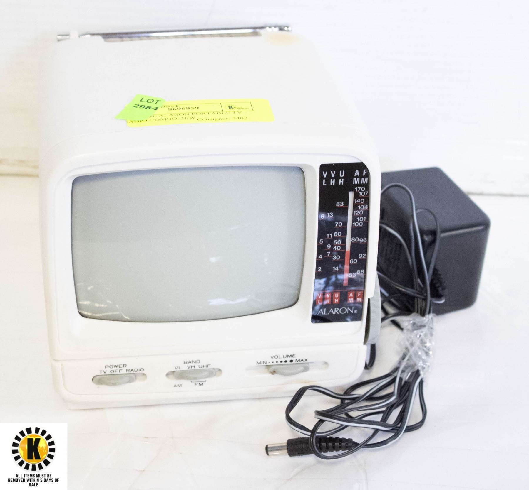 VINTAGE ALARON PORTABLE TV RADIO COMBO- B/W