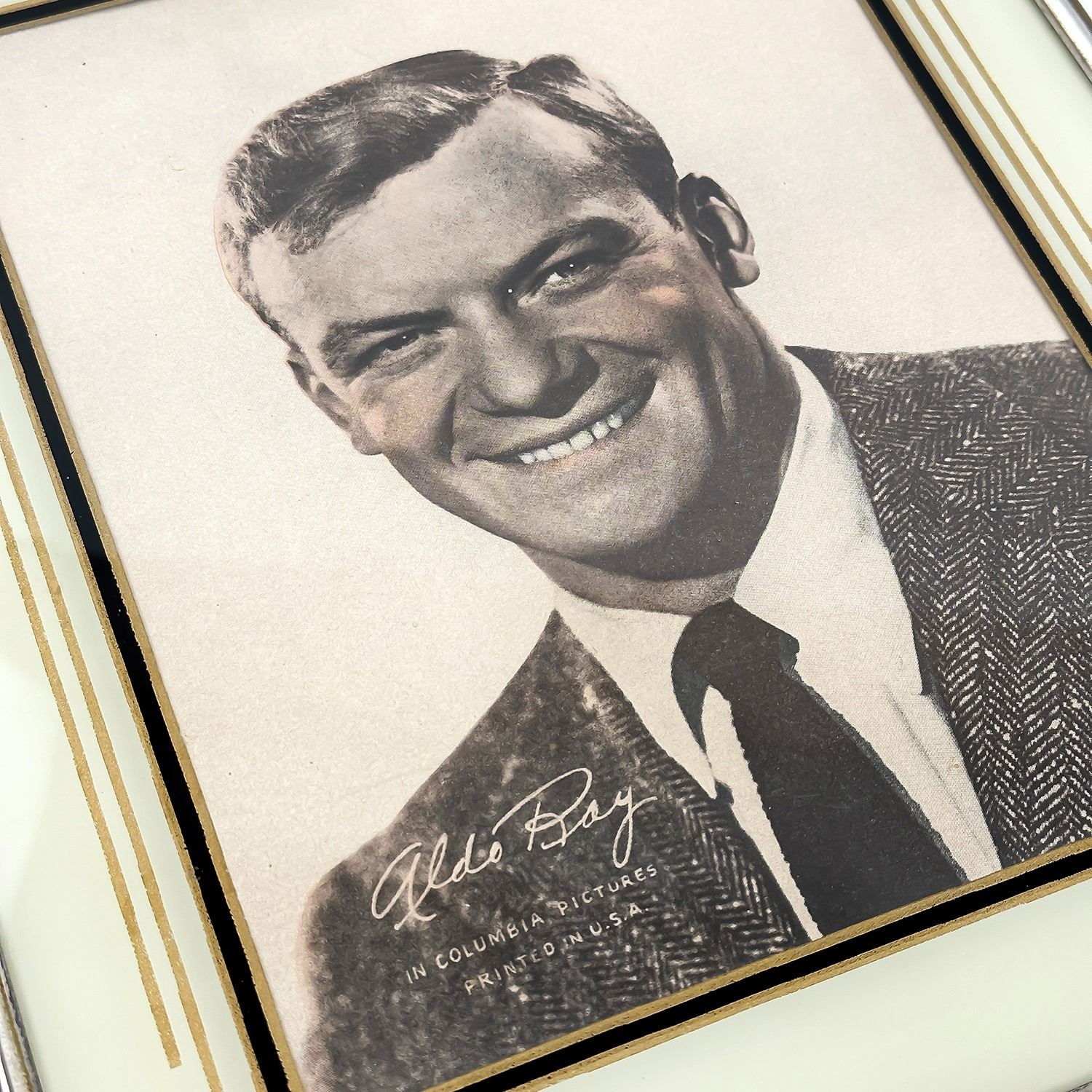 #8576 - ALDO RAY IN COLUMBIA PICTURES. ALDO RAY - MOVIE STAR - AMERICAN ACTOR OF FILM AND TELEVISION. PICTURE IS UNDER REVERSE PAINTED GLASS. FRAME MEASURES: 12” (30.5 CM) BY 10” (25.5 CM) - IMAGE AREA MEASURES: 8.75” (22 CM) BY 6.75”(17 CM)***ITEM(S) LOCATED IN LETHBRIDGE ALBERTA. FREE TRANSPORT TO EDMONTON OFFICE AVAILABLE FOR THIS AUCTION. WORLDWIDE SHIPPING IS AVAILABLE FOR ALL ITEMS